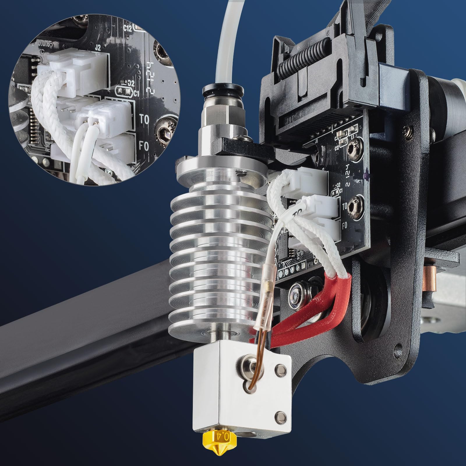 - Plug and Play: Both of the thermistor and heating rod come with connector, no wiring and peeling works.So this V5 J-head hotend will be quite easy to install on ANYCUBIC Vyper 3D printer.