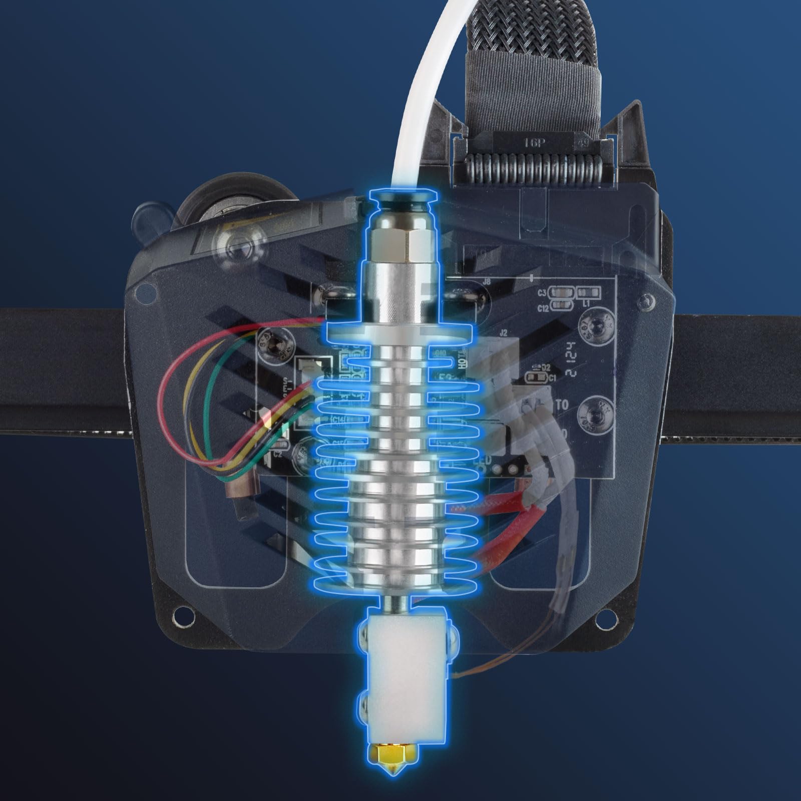 - Volcano Hotend Design: The print head heats evenly because of the special Volcano hotend nozzle design ,filament flows smoothly in throat nozzle ,and it supports high speed printing.