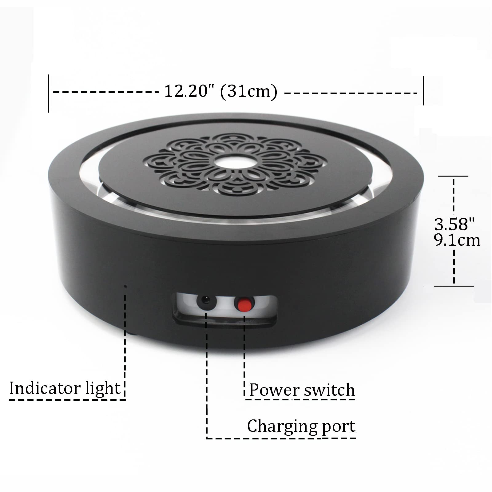 - Widely use - Dimensions: inch diameter, inch tall. On/Off switch on the side. It is very large and solid. The bottom with 4 silicone non-slip feet.It is good for any sizes vases.