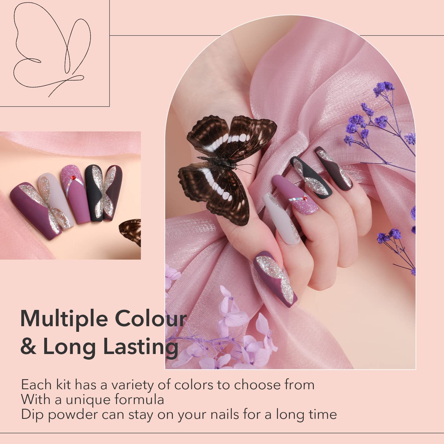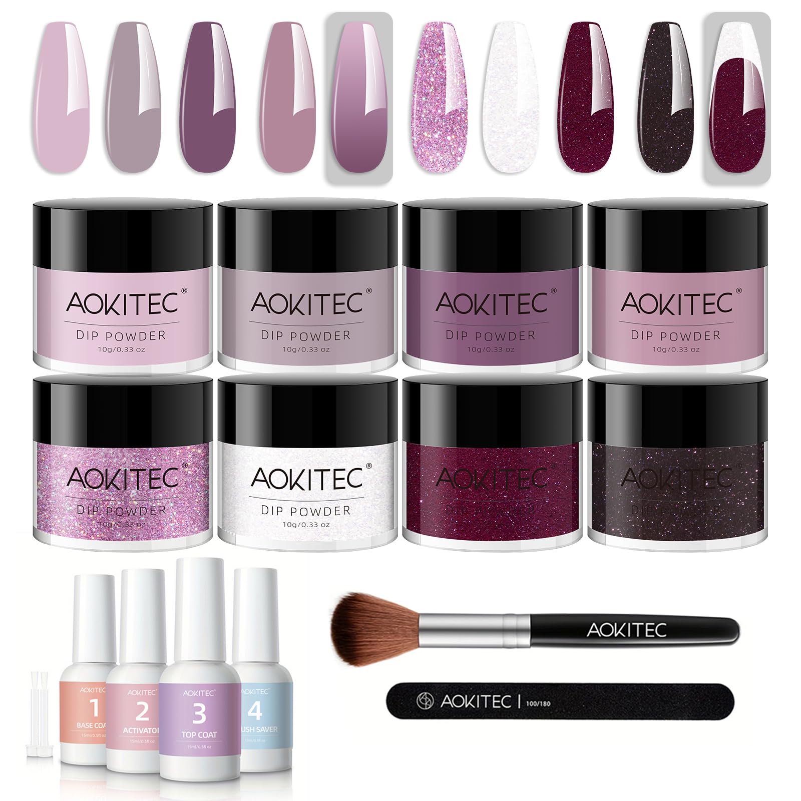 - Original Nail Care – 14Pcs Dip Powder Nail Kit 8Colors Black Clear Pastel Glitter Acrylic Dipping Powder Liquid Set with Base Top Coat Activator Brush Saver for French Nails Art Manicure DIY Salon by Aokitec