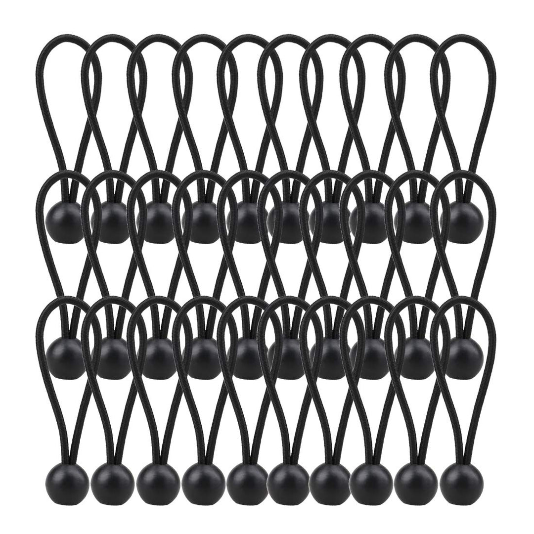 - Original Bungee Cords – 30 Pack Bungee Balls, Black Ball Bungee Heavy Duty Heavyweight 4 inches Tarp Bungee Cords, Weather Resistant Tie Down Strap 4mm Thickness - for Camping, Tents, Cargo, Holding Wire and Hoses by AOPRIE