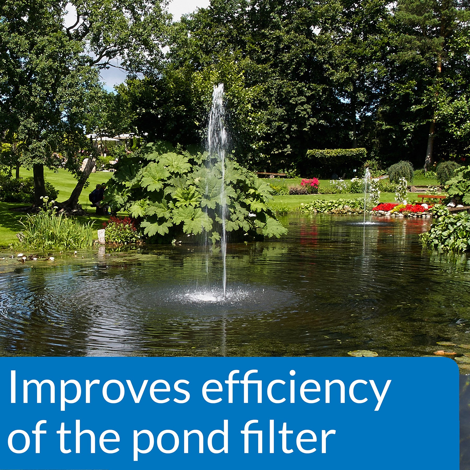 - Clumps floating particles into large clusters that can be easily removed by a pond filter