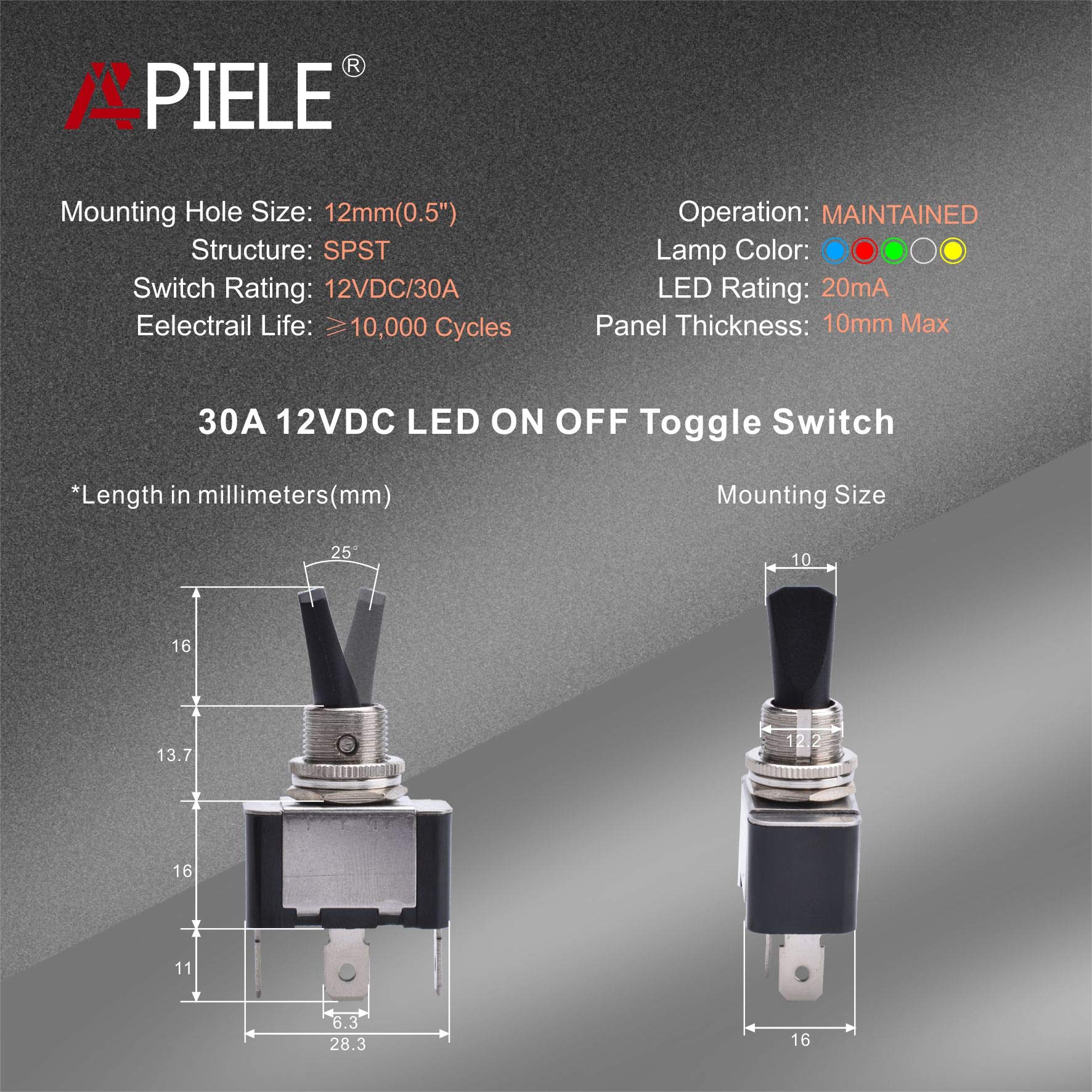 - Original Toggle – 30A Heavy Duty Toggle Rocker Switch ON Off 12V DC with LED Light Car Truck Auto Refit 12mm 0.5 Inch Mounting Hole (White) by APIELE