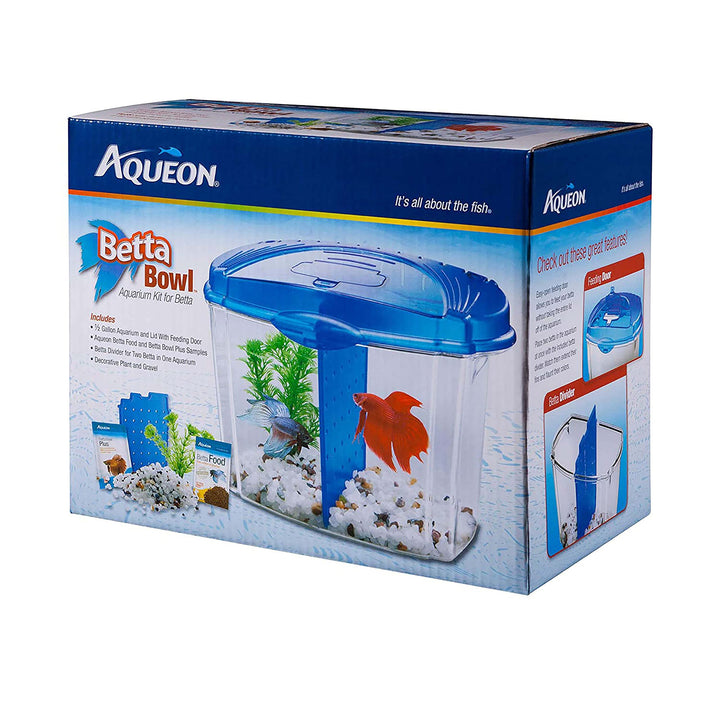 - Original Starter Kits – Betta Bowl Aquarium Fish Tank Kit, Blue, Half Gallon by Aqueon