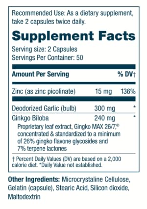 | ingredients | Ginkgo biloba extract, zinc picolinate, deodorized garlic |