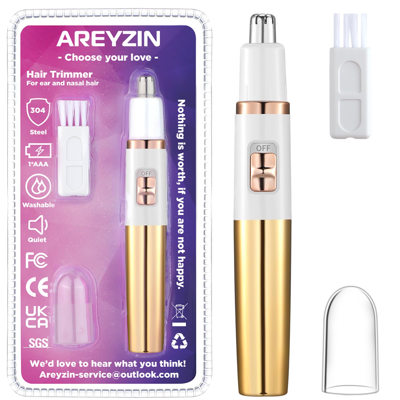 - Original Nose & Ear Hair Trimmers – Nose Trimmer for Women Ladies Painless Ear and Nose Hair Trimmer for Men Eyebrow Facial Ear Hair Trimmer Nose Hair Clipper Professional, Waterproof, Gold by AREYZIN