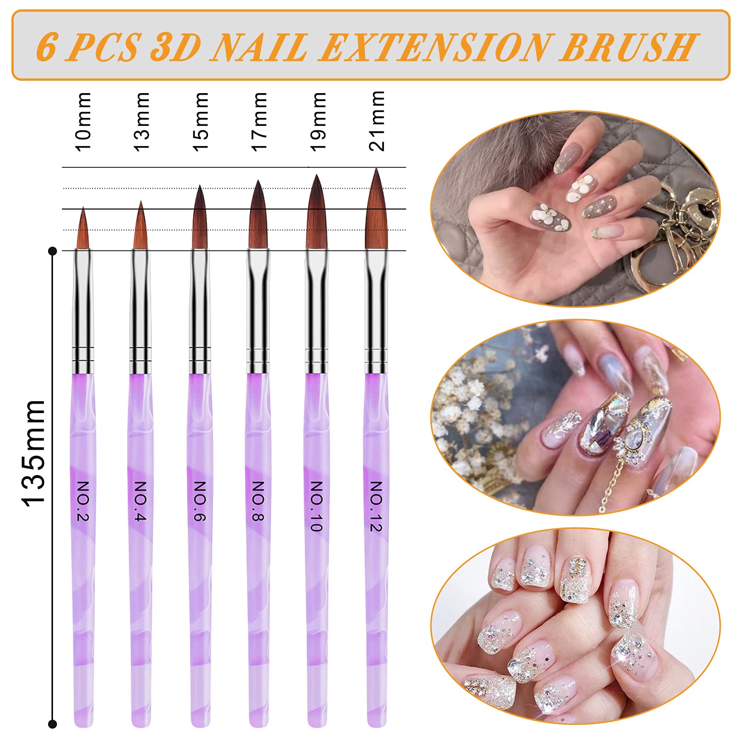 - Applicable Occasion--The acrylic nail brush set will help to make so many different types of DIY nail art, such as painting flowers, making flat or 3D patterns, drawing lines, applying colors, extending the nail gel.