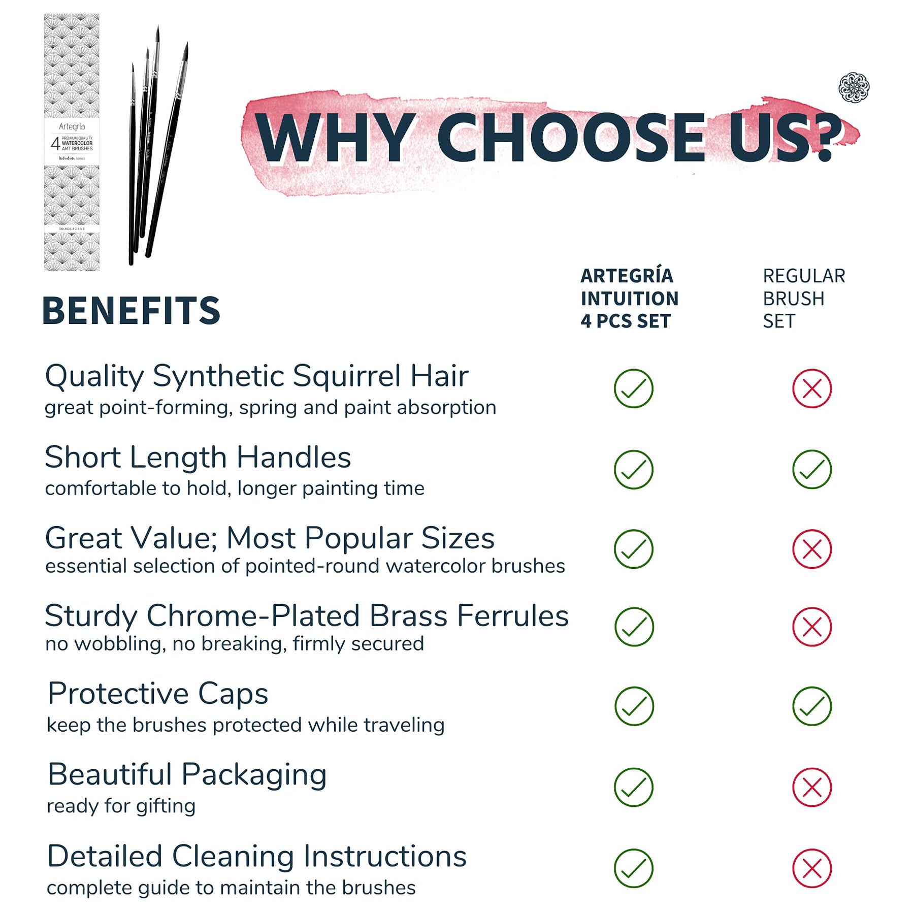 - Original Paintbrush Sets – Watercolor Paint Brush Set - 4 Round Watercolor Brushes - Sizes # 2 4 6 8, Soft Synthetic Squirrel Hair, Pointed Round Tips for Professional Artists - Water Color, Gouache, Ink by ARTEGRIA