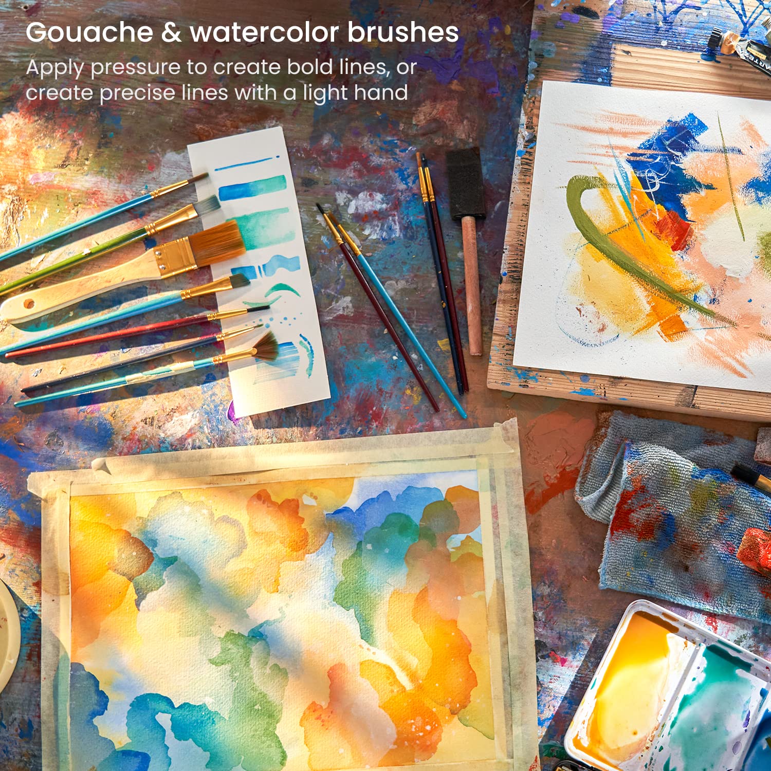 - Paint in Multiple Mediums: Our set of versatile watercolor paint brushes allows you to choose from a variety of bristle types and sizes. Whether you're working with watercolor, acrylic, or gouache paints, start creating stunning art pieces on paper, canvas, or walls.