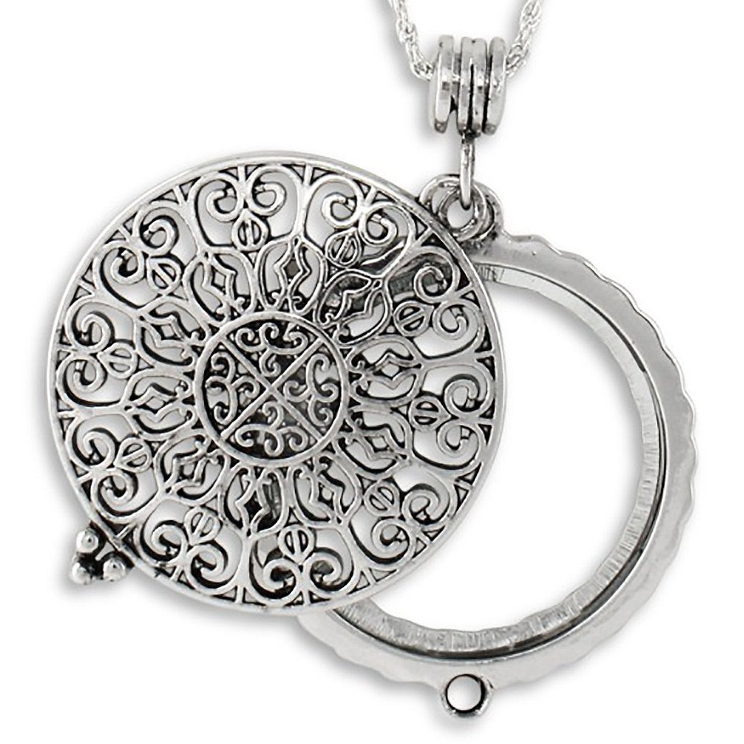 - Original Pendant Necklaces – Ornate Filigree 4X Magnifier Magnifying Glass Sliding Top Magnet Pendant Necklace, 30 (Silver Tone) by Artisan Owl