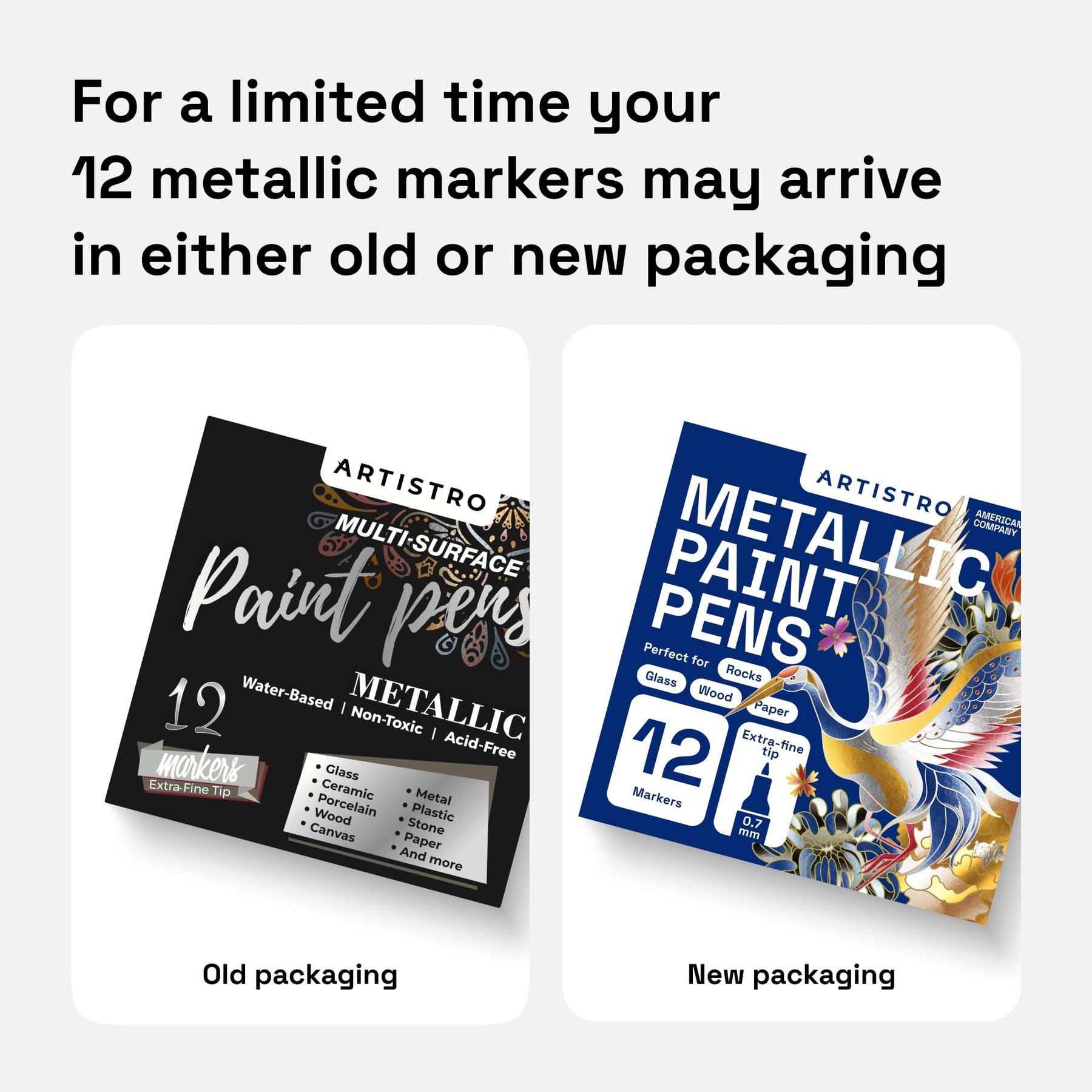 - Original Pens & Markers – Metallic Paint Pens for Rock Painting, Stone, Ceramic, Glass, Wood, Fabric, Pebbles, Scrapbook Journals, Photo Albums, Card Stocks. Set of 12 Acrylic Paint Markers Extra-Fine Tip 0.7mm by ARTISTRO