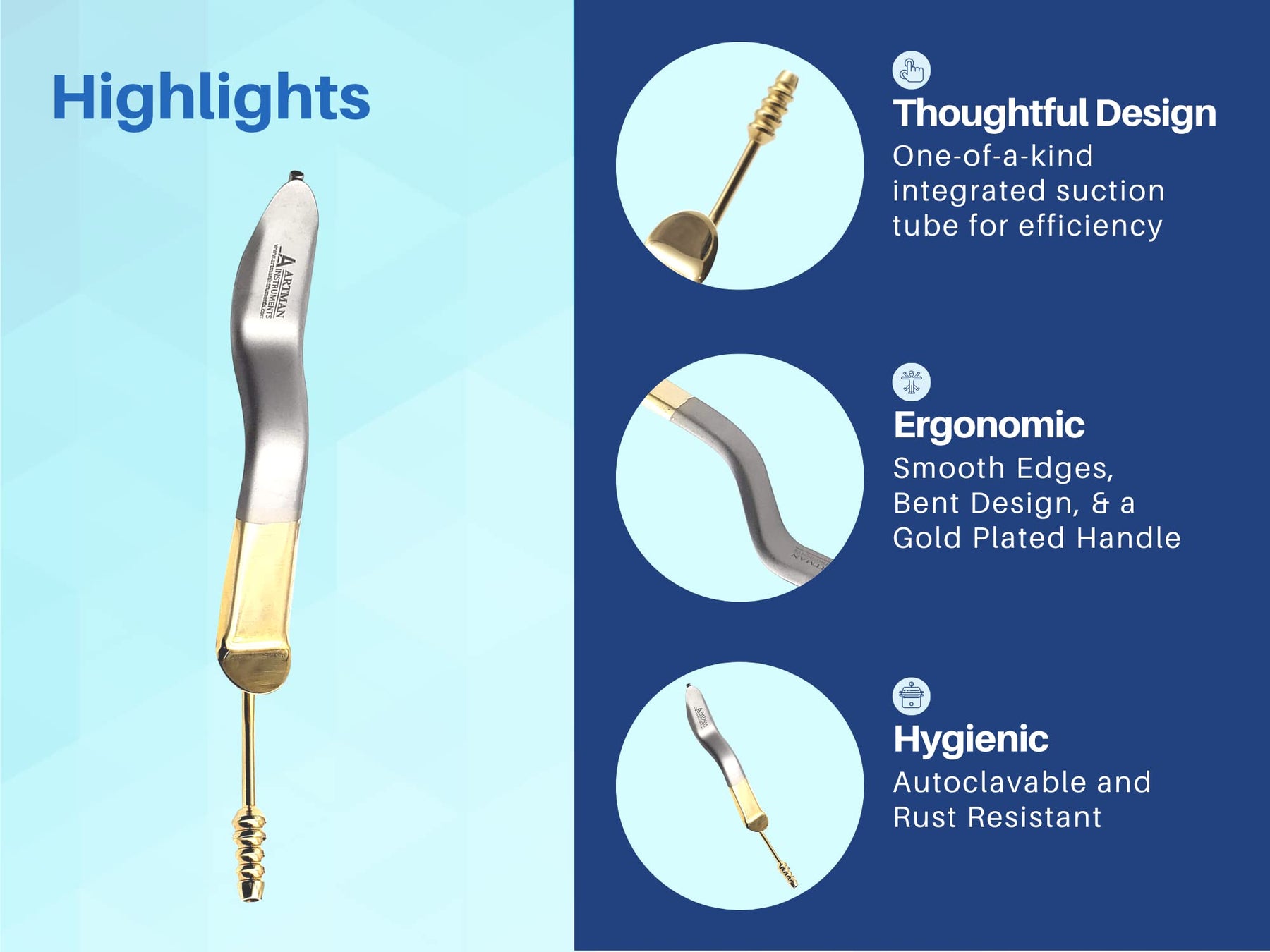 - Original Cheek Retractors – Minnesota Cheek Retractor with Suction Gold Plated Surgical Dental Instruments ARTMAN Brand by Wise Linkers by Artman Instruments