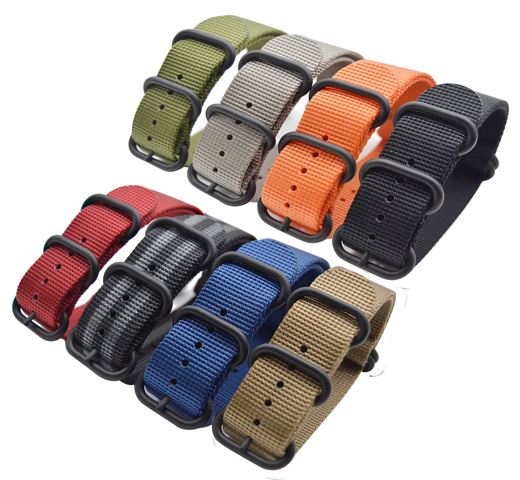 ballistic nylon with premium solid matte-brushed stainless steel hardware. A good quality nylon strap