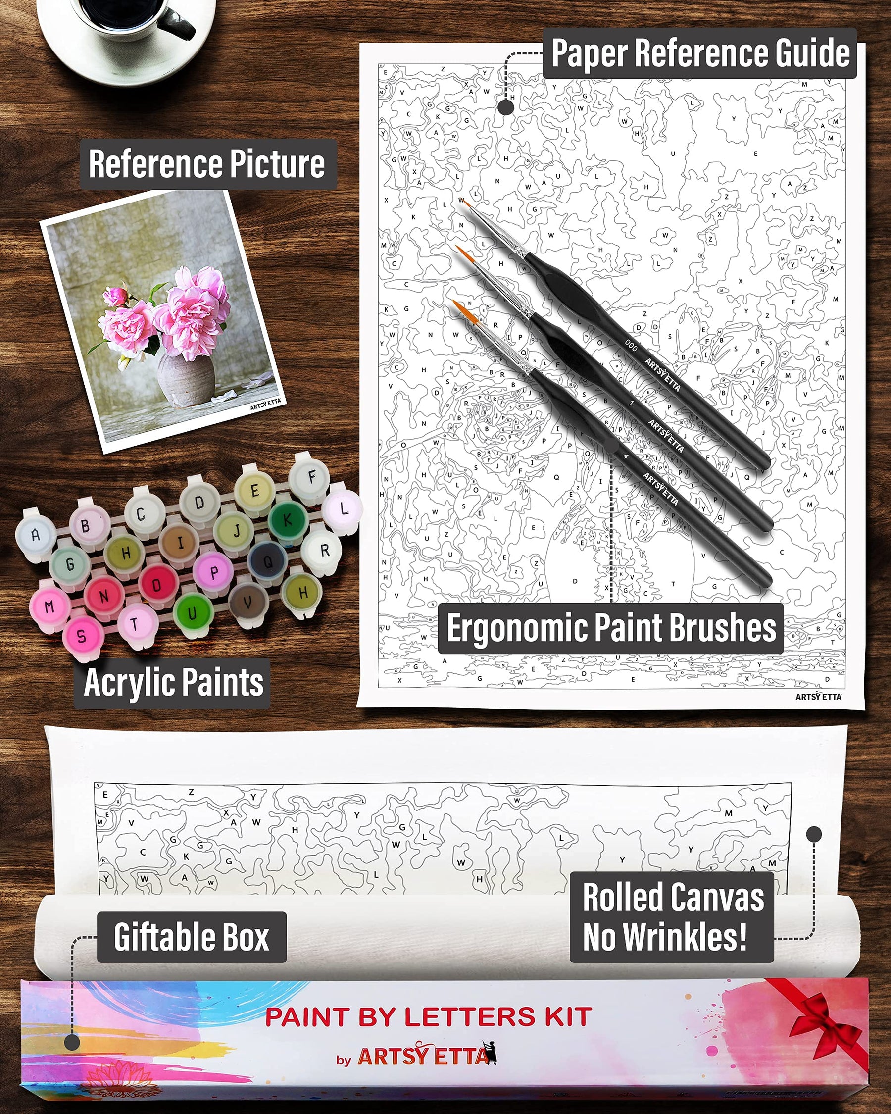 - Original Adults' Paint-By-Number Kits – Paint by Number for Adults Beginners with Letters - Adults' Paint-by-Number Kits - Paint by Numbers Flowers - Easy DIY Acrylic Painting on Canvas, Sip & Craft Art Set by Artsy Etta
