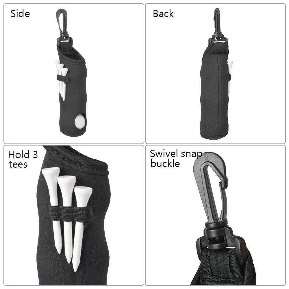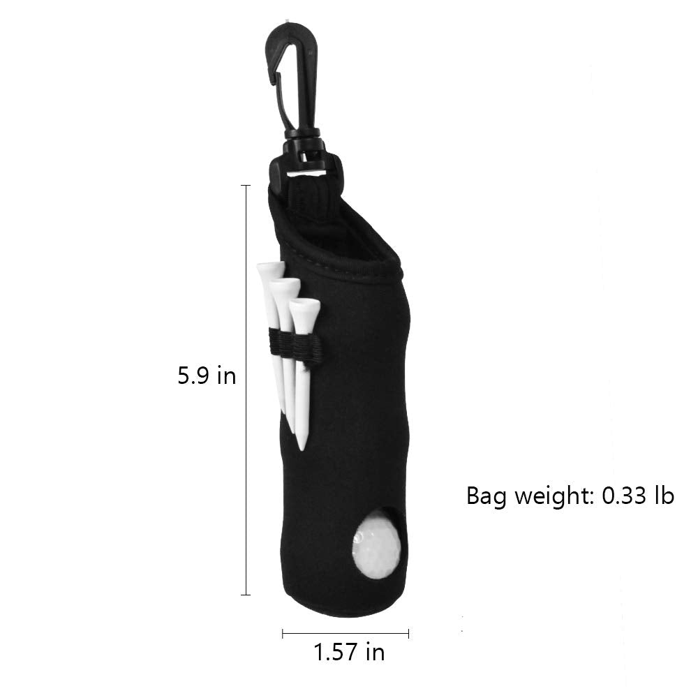- The golf ball carry bag is made of soft diving cloth, which is light and flexible, can be reusable. It can hold 3 golf balls and 3 tees, but golf balls are not include.