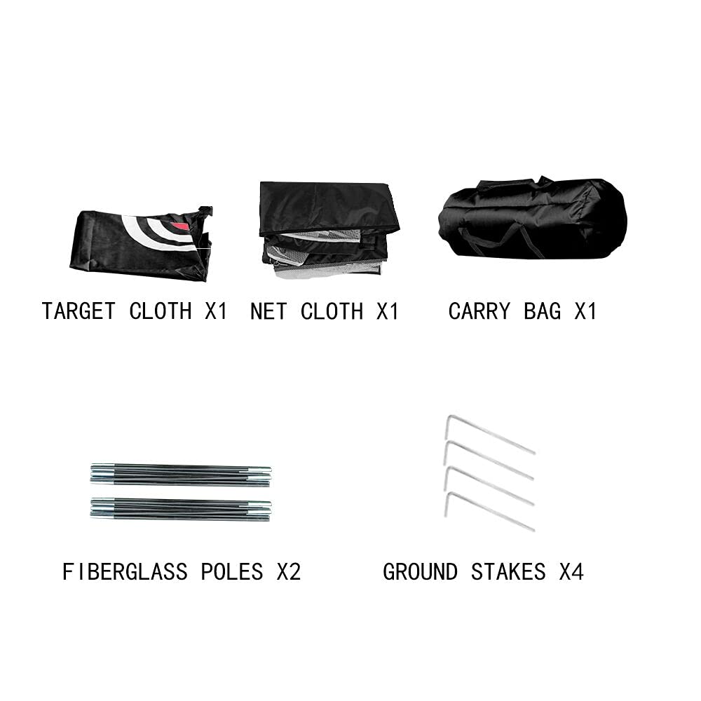 - Product size: 6.6FT: 6.6ft(L) x 3.7ft(W) x 4.4ft(H). A variety of styles for you to choose. And package include 1 golf net, 1 golf target aids, 1carrying bag, 2 fiberglass poles and 4 corner pins.