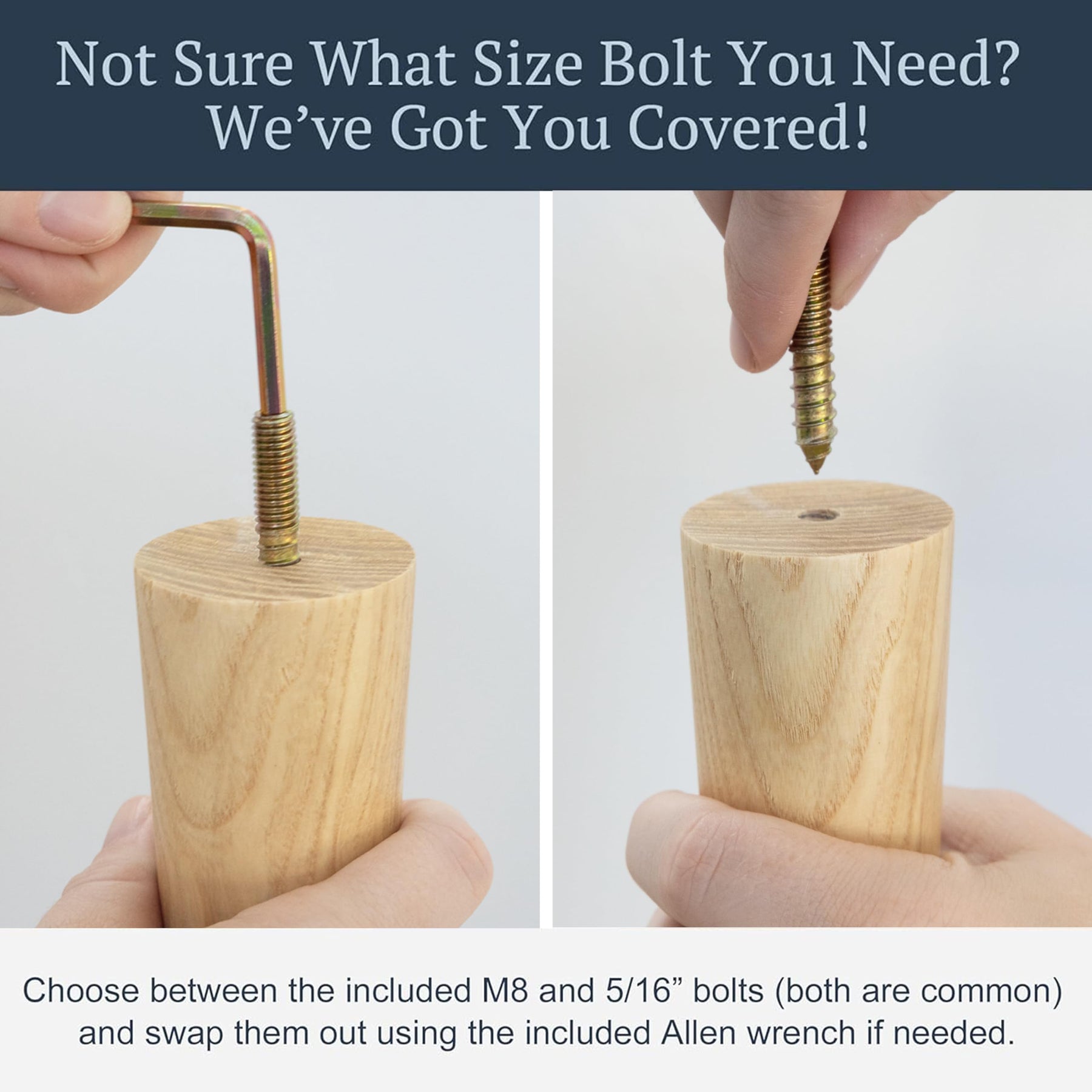 - Easiest To Install Legs On The Market: Bold statement, but one we're confident in saying; You'll receive professional, step-by-step instructions that we created along with (2) drill bits, (4) mounting plates, (12) premium screws, and (4) protective felt pads; We even pre-installed the M8 hanger bolts for you (and include interchangeable 5/16 bolts in case you need them)!