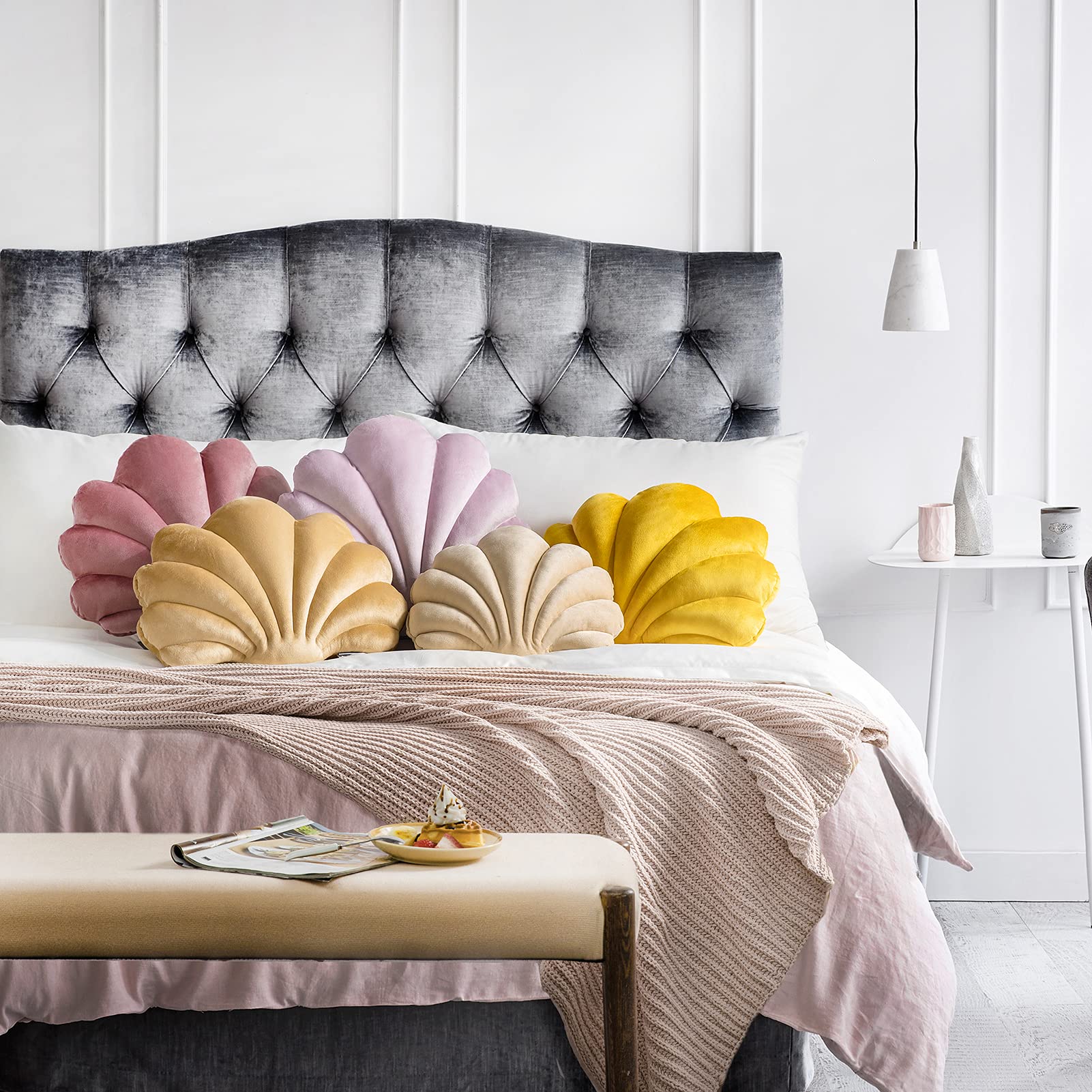- Original Throw Pillows – Ashler 3D Throw Pillows Shell Shaped Accent Throw Pillow, Soft Velvet Insert Included Cushion for Couch Bed Living Room, Pack of 1, Pink Purple, 18 X 13 inches by Ashler Home Deco