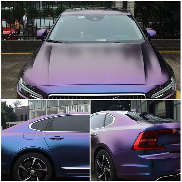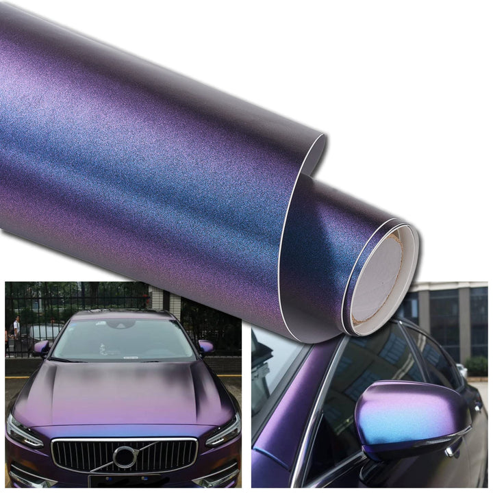 - Original Vinyl Wraps – Purple to Charming Blue Matte Metallic Chameleon Vinyl Wrap Color Change DIY Car Wrap Vinyl Film, 11.8'' x 7.87'' by ATMOMO