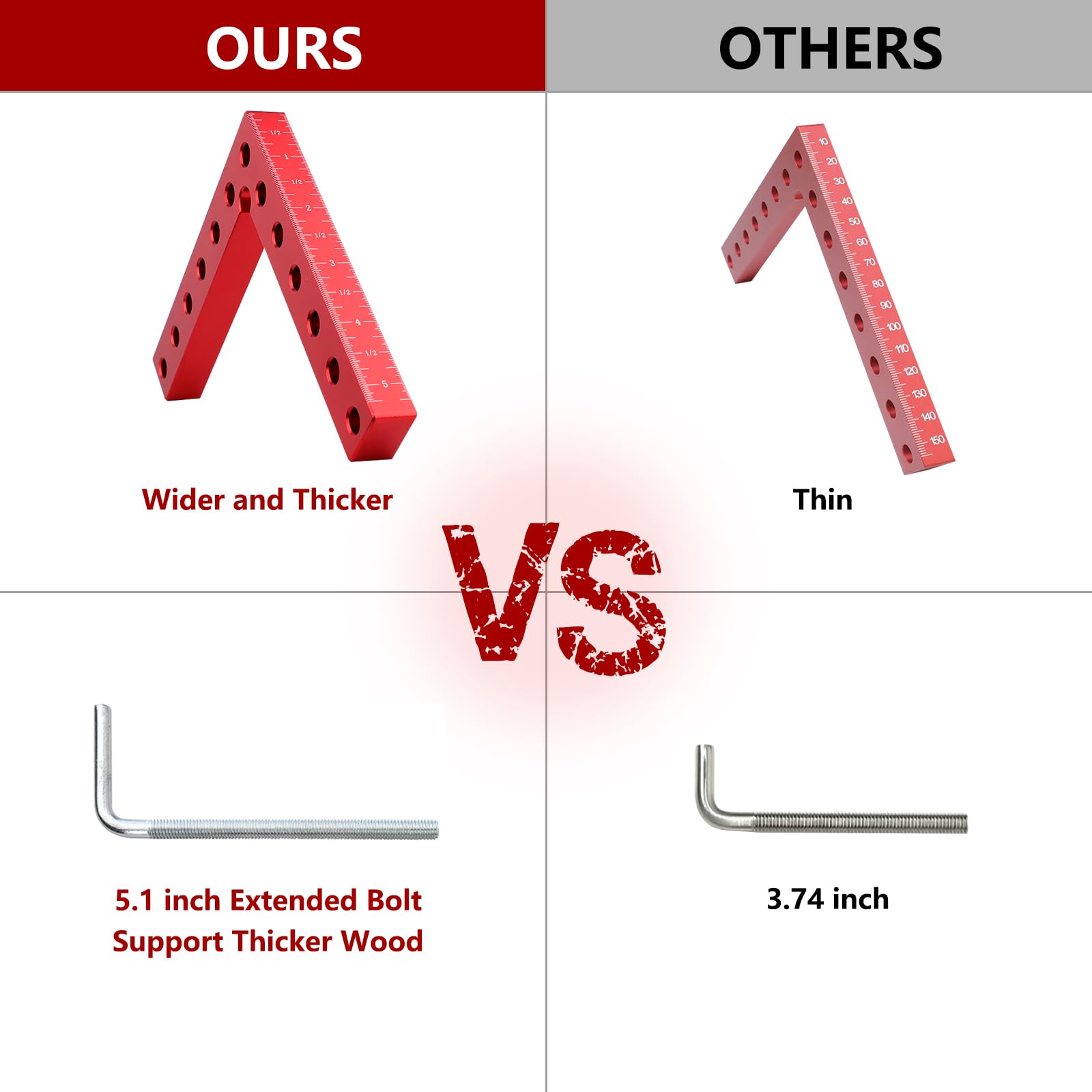 - Upgraded Extended Screw:The extended 5.1-inch screw is designed to clamp onto most types of wooden boxes to assist in leveling during the bonding process. It can be used with clamps to check and position the joints of the wood panels, and glue or weld at right angles.Right angle clamps are a very practical tool that can make your woodworking project simpler