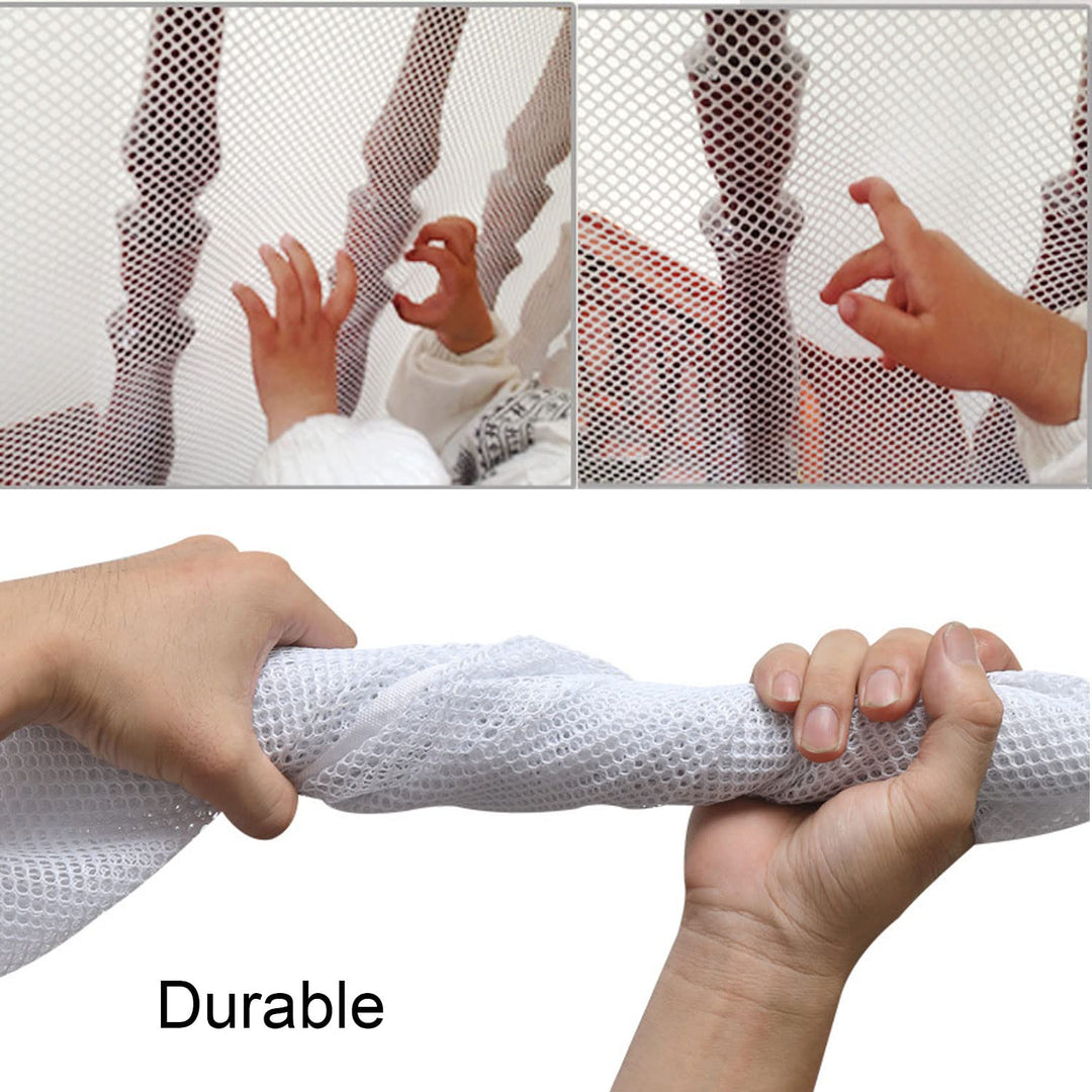 - Widely used and Easy Clean/Storage: perfect indoor and outdoor stair net safety net. You can use the net for children's cribs, hallways, stairs, balconies, etc. Wipe down with soap and sponge or just remove it with direct washing. It can be folded and stored conveniently.
