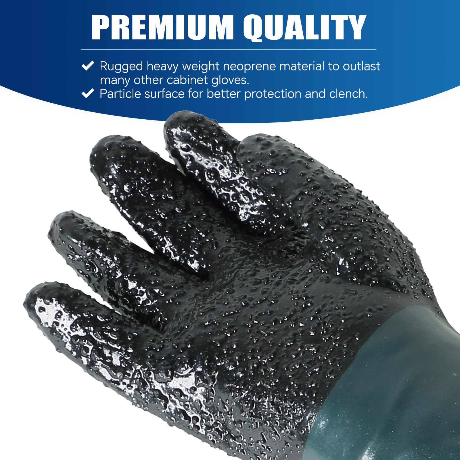 - Premium Quality: These sandblasting gloves are constructed of rugged heavy weight neoprene material to outlast many of those other cabinet gloves. The gloves have a cotton lining for comfort and a rough rubber surface for easy gripping of items, absorbing sweat well.