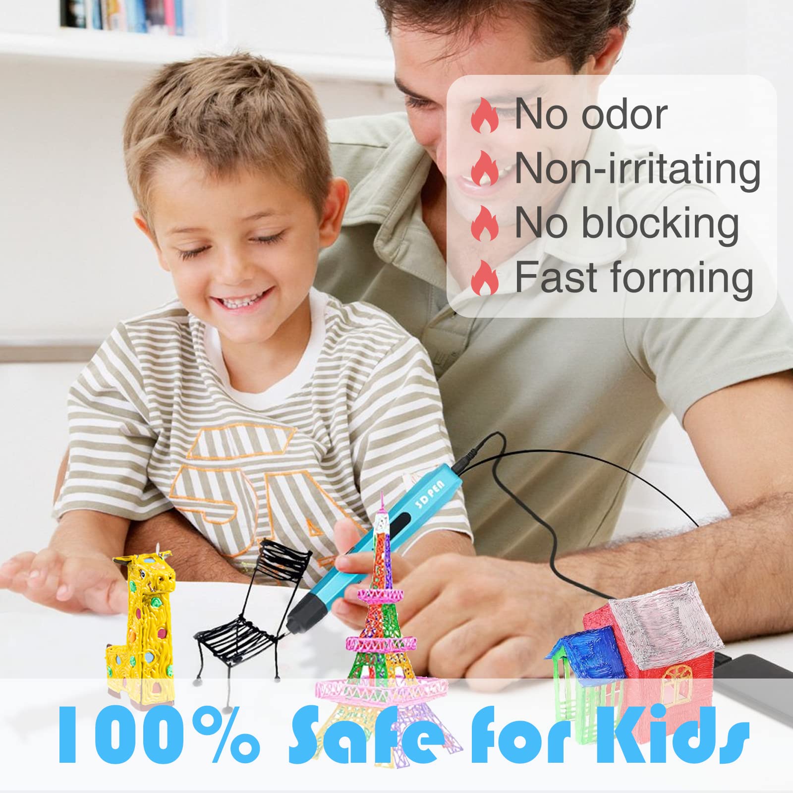 This 3D pen filament is made of starch material with premium quality control, no bubbles, no clogging and no odor while drawing, safer for users and the environment; 3D pen filament refills fast molding will give your kids and 3D print lovers a smooth drawing experience.