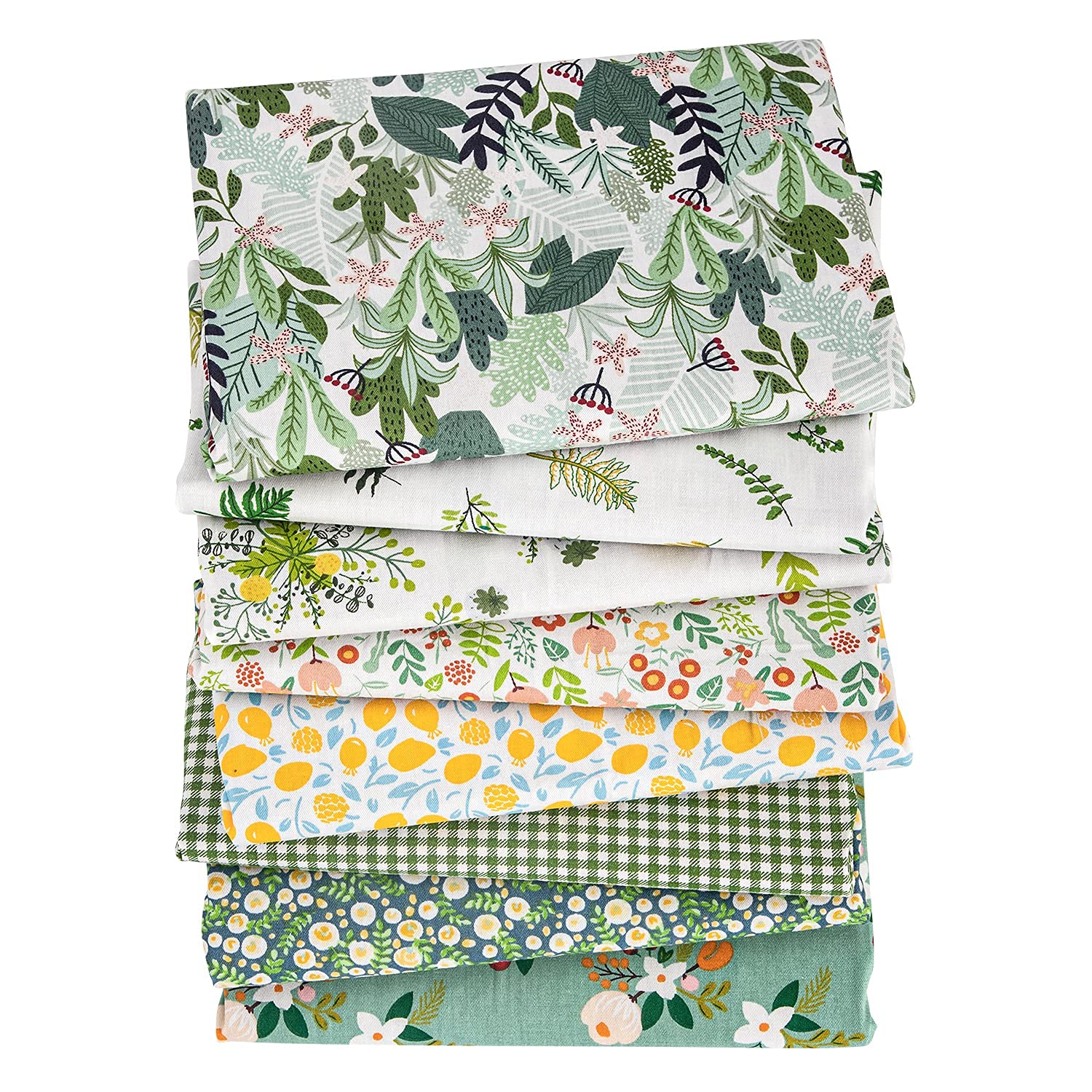 - Original Fabric – 8pcs Fat Quarter Fabric Bundles 19.6'' x 19.6''(50cm x 50cm) Cotton Craft Fabric Pre-Cut Squares Sheets for Patchwork Sewing Quilting Fabric(Green Floral) by Aubliss