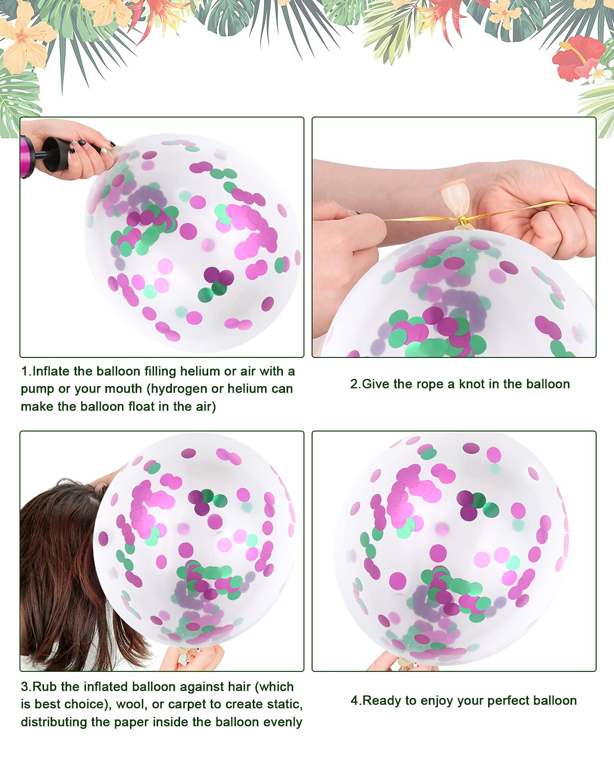 - VALUABLE PACKAGE: 1 x hawaiian table skirt, 55 x balloons, 20 x tropical leaf, 14 x luau flowers, 12 x fruit straws, 12 x multicolored umbrellas, 2 x paper pineapple, 1 x banner, 1 x paper garland, 1 x balloon ribbon, 1 x balloon strip