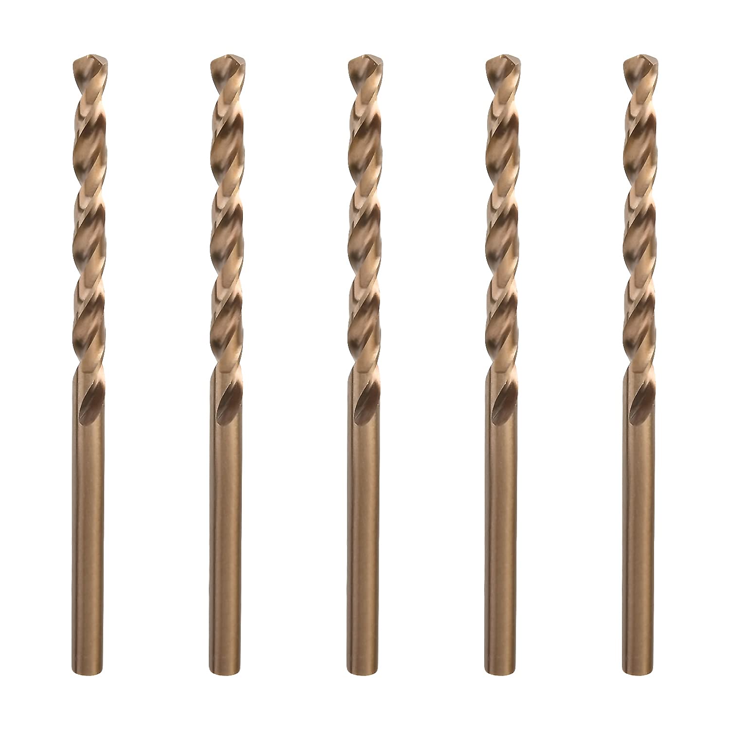 - Original Jobber Drill Bits – 4mm HSS Straight Shank Cobalt Twist Drill Bit-Jobber Length Fully Ground Straight Shank – 5% Cobalt M35 Grade, Champagne for Stainless Steel Cast Iron 5PCS by Auniwaig