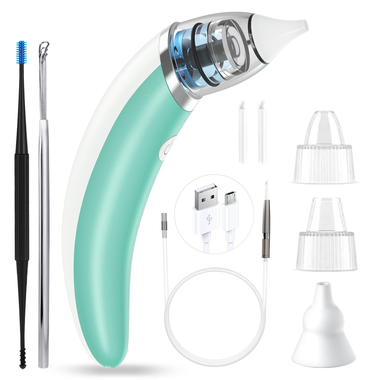 - Multi-functional Ear Cleaning Tool: When using the ear wax remover vacuum cleaner to remove earwax, it is recommended to use with salt water, stubborn earwax can be softened and loosened before sucking out; Can be used not only for ear cleaning, but also as a nasal suction device and blackhead remover with specialized silicone replacement heads