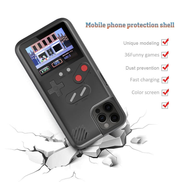 - Clear Full Color Display Gameboy Phone CaseDifferent from other for iphone cases on the market, our mobile phone case have a retro design with 36 categories of retro games.The gameboy cover case for Apple iPhone is first cell phone case can play game. Eye-catching and funny case , Retro design with gameboy, outstanding your iPhone among your friends.