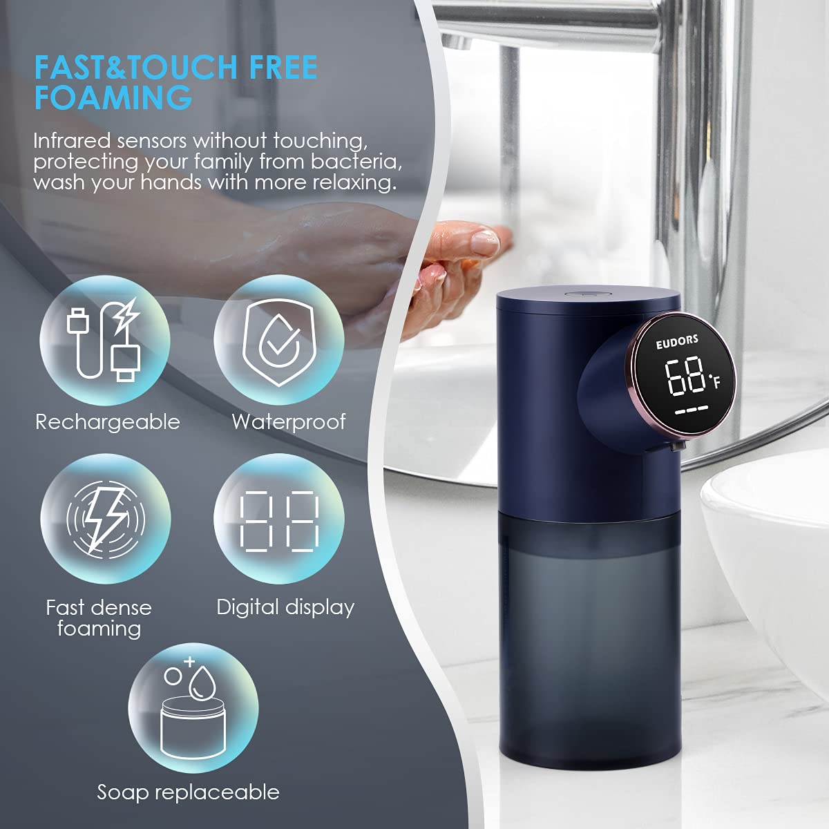 - Original Built In Soap Dispensers – Automatic Touchless Soap Dispenser for Kitchen Sink, Electric Dish Foam Soap Dispenser with Temperature Display, Rechargeable Waterproof Soap Dispenser for Bathroom, Office, Hotel, Restaurant, Blue by EUDORS