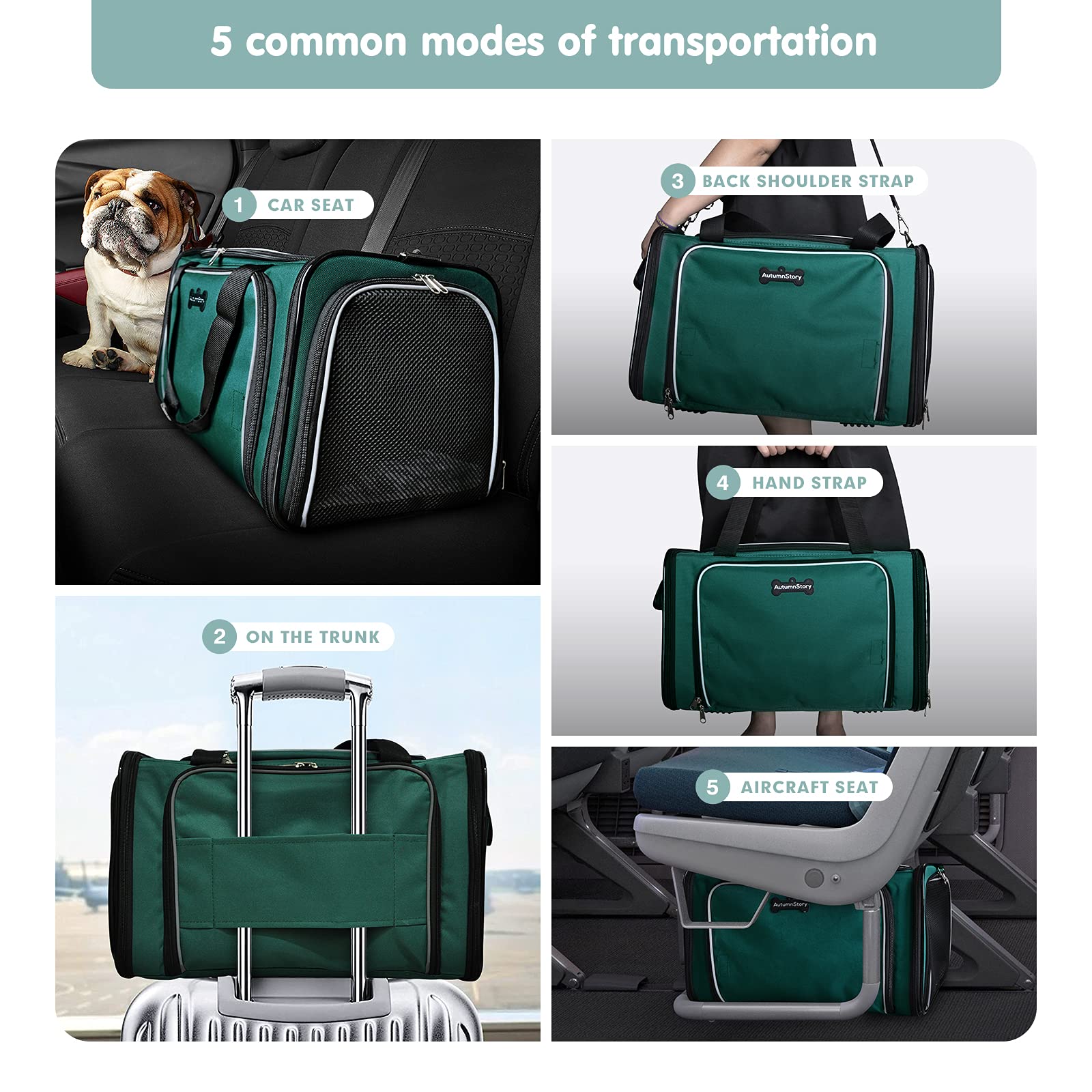 - Original Soft-Sided Carriers – Cat Carrier, Pet Carrier Airline Approved, 2 Sides Expandable Dog Carrier, Soft-Sided Collapsible Dog Travel Bag with Removable Fleece Pad for Cats, Puppy and Small Animals (Green) by AutumnStory