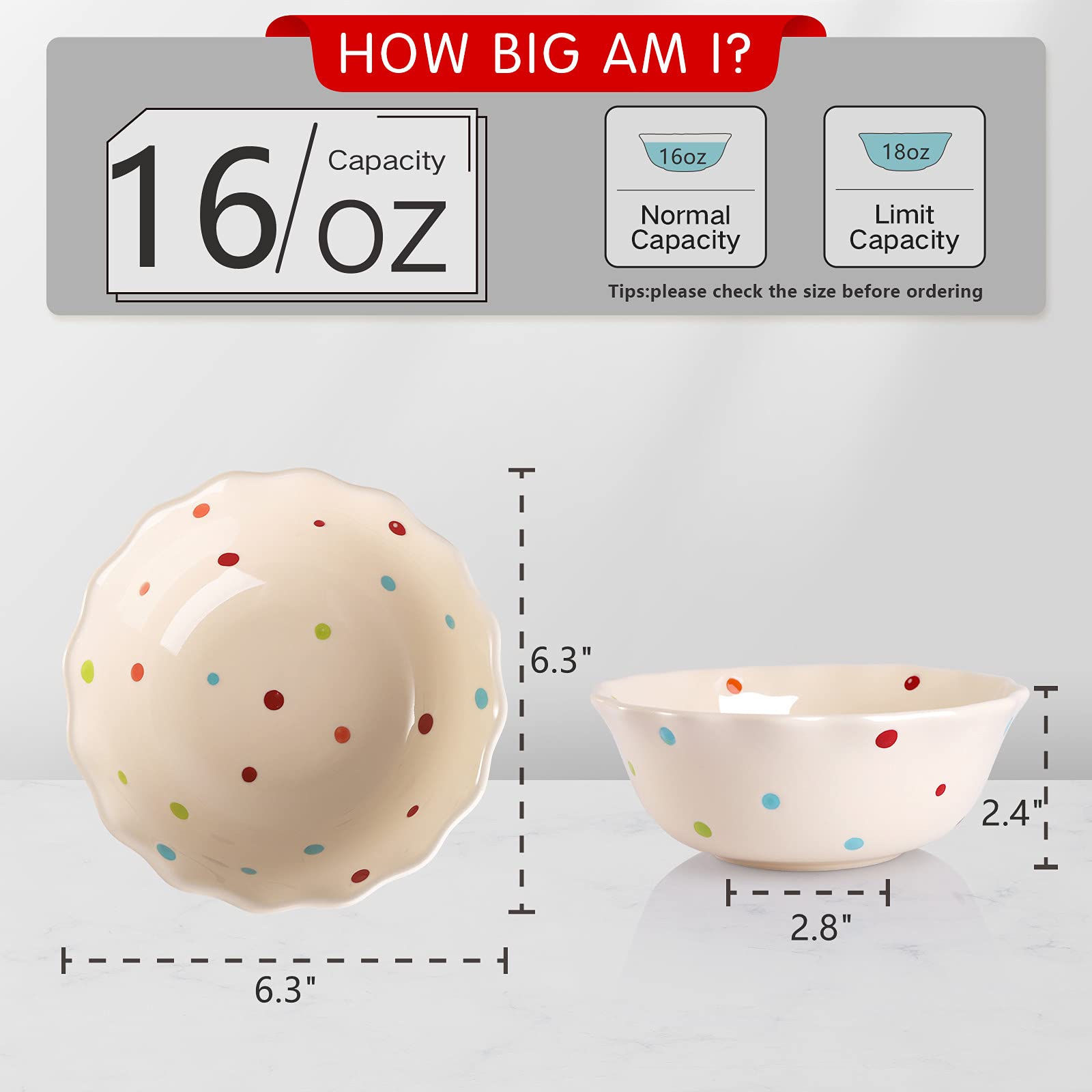 - Perfect Size for Various Food: Package included 4 pack salad bowls, each measures 6.3 in diameter and 2.4 in depth, our ceramic bowl especially is suitable for cereal, dessert, fruit, soup, rice, pasta, oatmeal, popcorn, beans and so on.