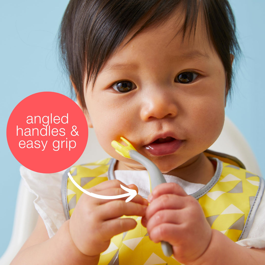• OCCUPATIONAL THERAPIST APPROVED DESIGN: Designed with input from a pediatric OT, these are designed for the size and shape of little mouths and hands. Easy grip angled handles ensure optimum hand to mouth positioning. The deep spoon helps food stay on.