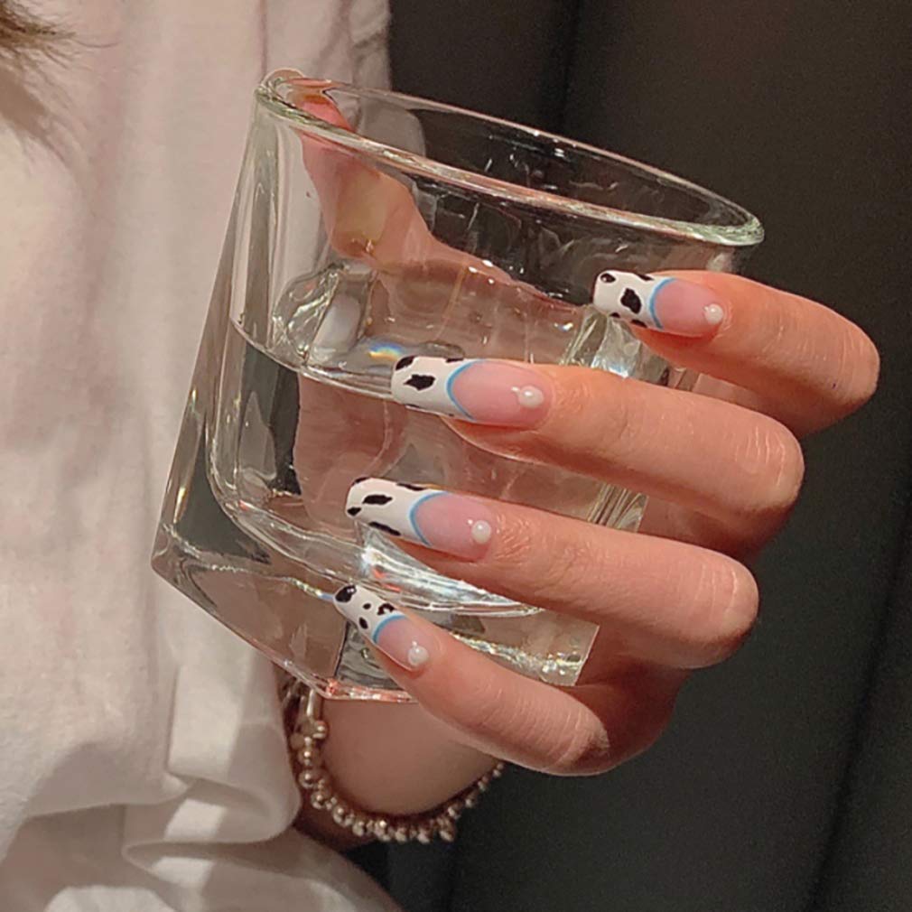 - Original Artificial Nails – Coffin Fake Nails, 24Pcs Long Nude False Nails Cow Press on Nails Pearl Acrylic Nail Art Tips for Women and Girls by BABALAL
