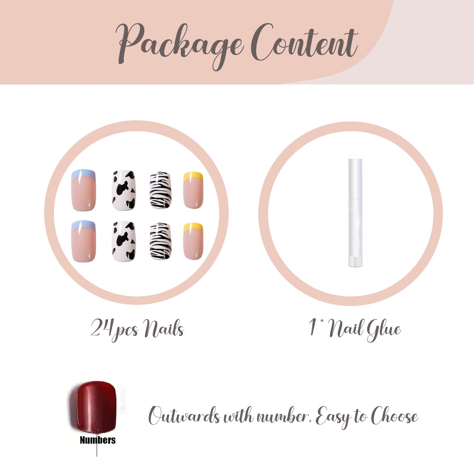 - Original Artificial Nails – Square Press on Nails, 24Pcs Cute Fake Nails Glossy Acrylic False Nails with Design for Women and Girls by BABALAL
