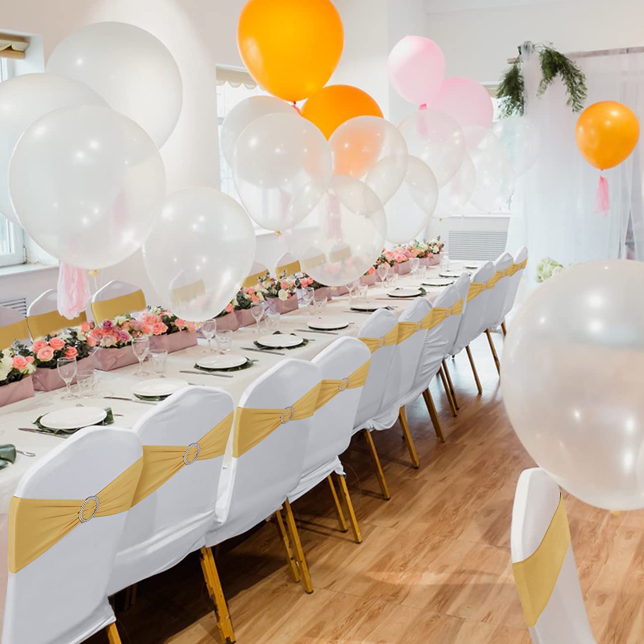 - Original Dining Chair Slipcovers – Spandex Chair Sashes Bows 50PCS Premium Stretch Chair Cover Band with Buckle Slider Universal Elastic Chair Ties for Wedding Party Ceremony Reception Banquet Decoration (Gold) by Babenest