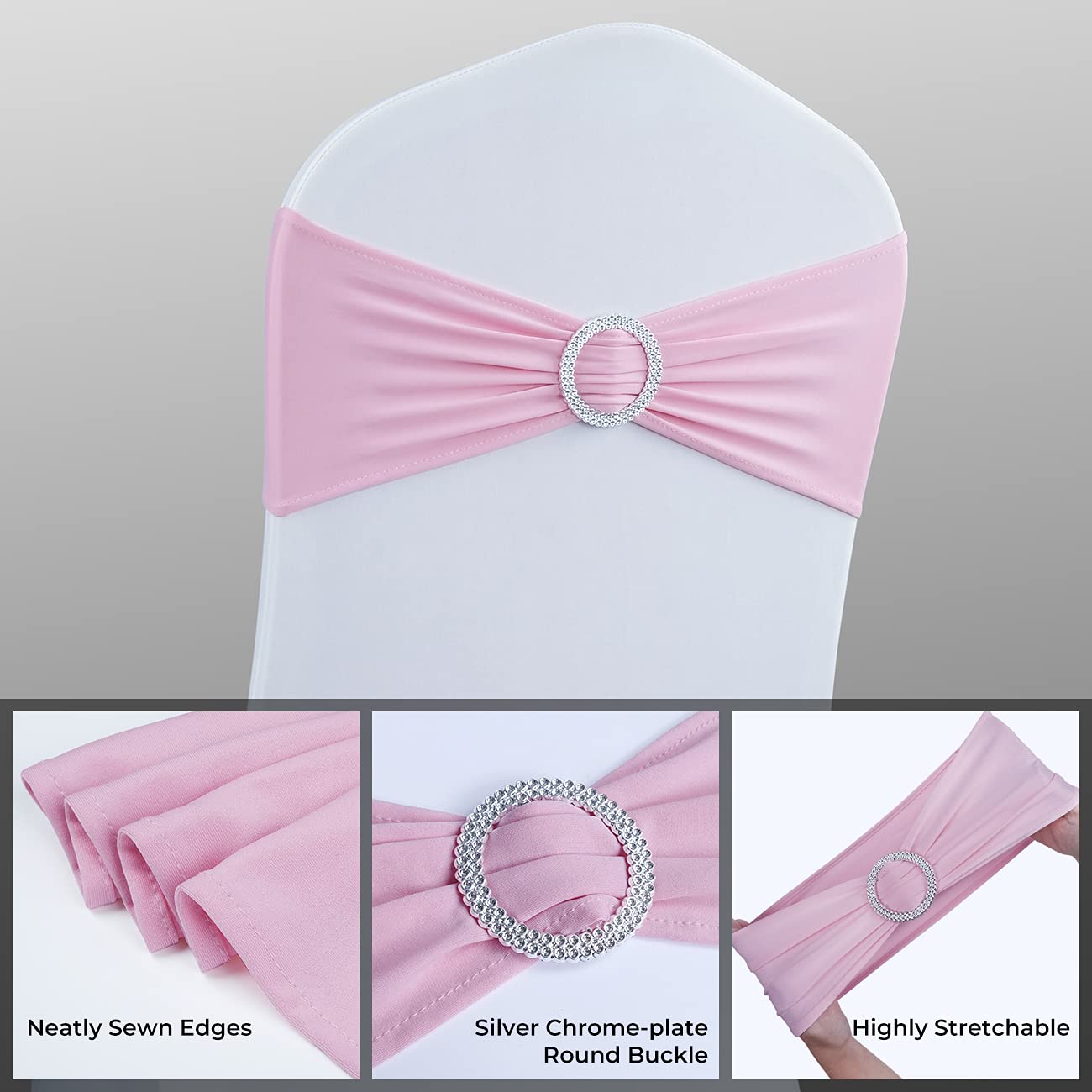 - Original Dining Chair Slipcovers – Spandex Chair Sashes Bows 50PCS Premium Stretch Chair Cover Band with Buckle Slider Universal Elastic Chair Ties for Wedding Party Ceremony Reception Banquet Decoration (Pink) by Babenest
