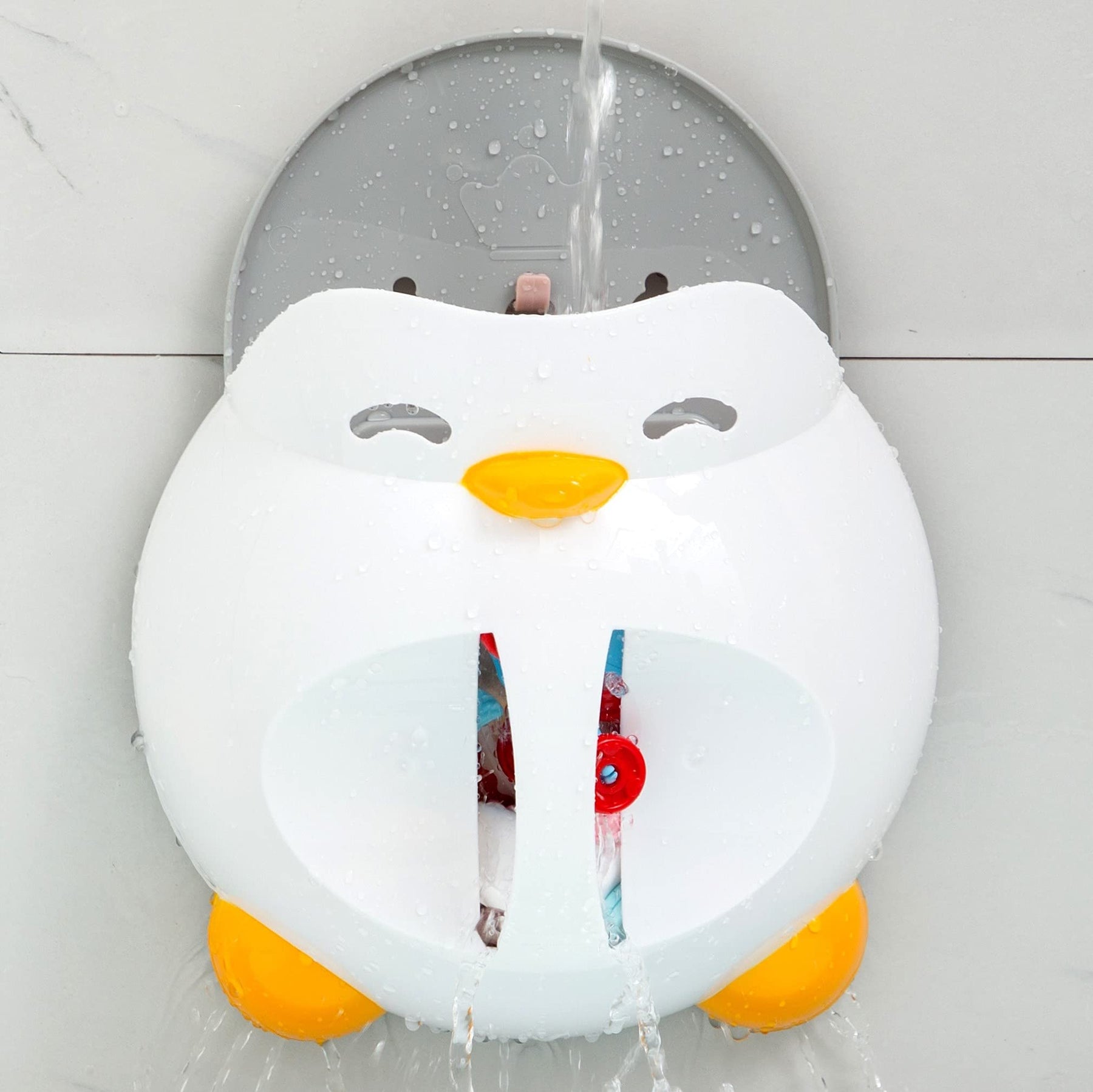 - EASY MOUNT ON WALL- The toddler bath toys comes with a yellow sturdy hanger ready-to-install on any dry surface, adheres best to dry surfaces. Powerful sticking adhesive tape ensuring good quality and long service life.