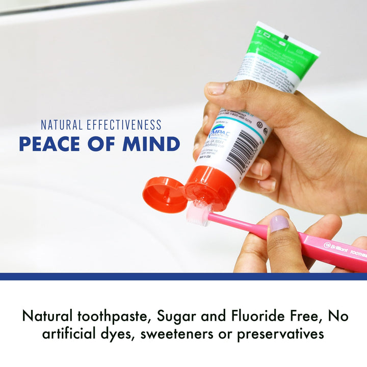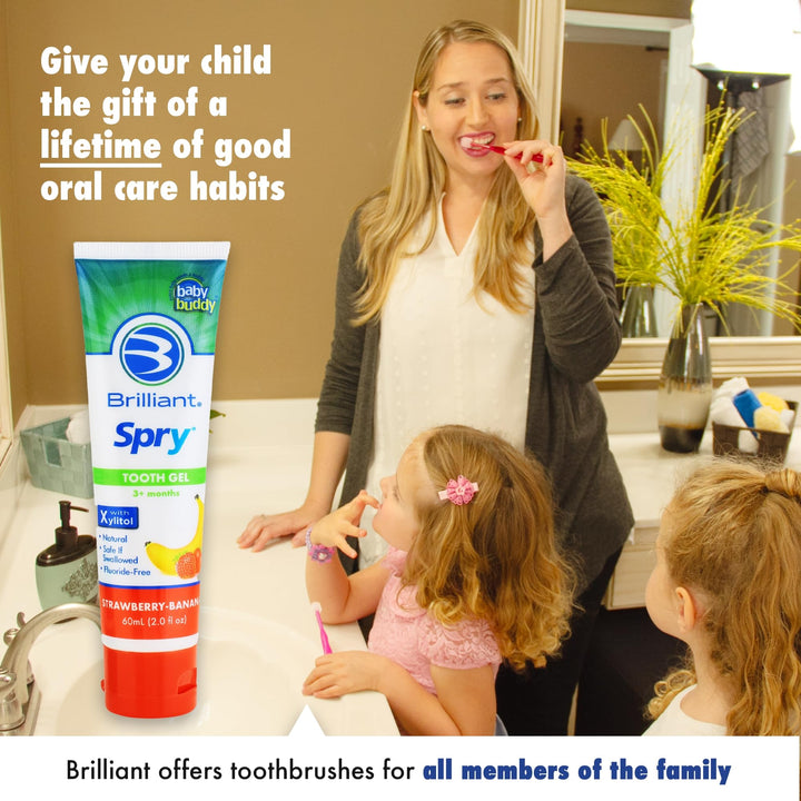 - Original Toothpastes – Baby Buddy Kids Toothpaste Gel With Xylitol For Teeth And Gums - Natural, Safe If Swallowed, Fluoride Free - Strawberry Banana - 2 Oz - 3 Months And Up - By Spry by BRILLIANT