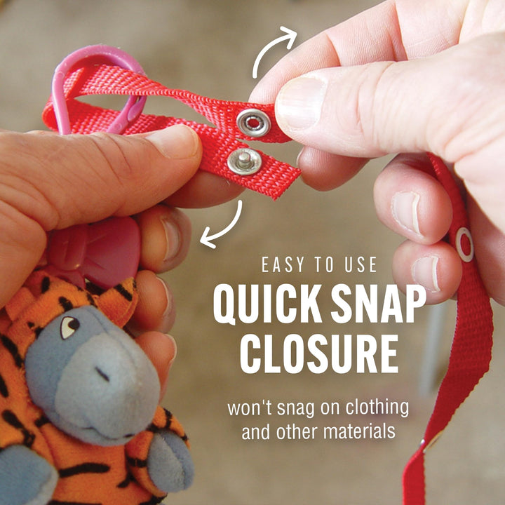 - CONVENIENT – Multi-use adjustable (8-10 inches) safety strap easily secures baby’s favorite things and unlike Velcro, the snaps won’t snag on clothing