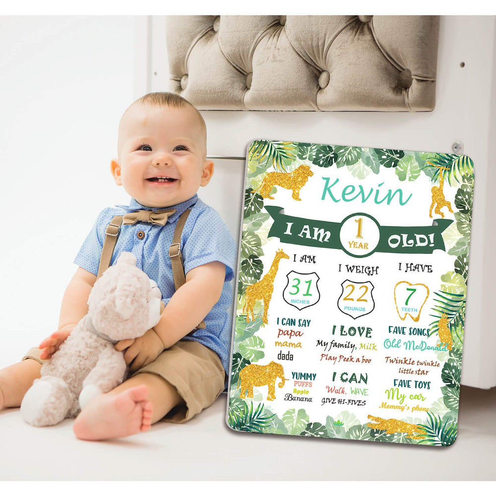 - Original Memory Boards – Baby Milestone Wild One Birthday Decorations Board - Baby Monthly Milestone First Birthday Jungle Animal Safari Theme Photo Birthday Party Decor Perfect Baby Boy Gifts Baby Shower Gifts for Baby Boy by LOTUS-A