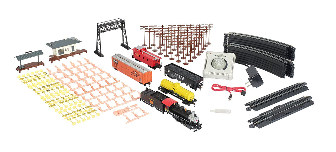 - Includes; Plug Door Box Car, Open Quad Hopper Car, Single-Dome Tank Car, Off-Set Cupola Caboose, Suburban Station, Signal Bridge, Miniature Figures, Railroad Signs, Street Signs, and Telephone Poles