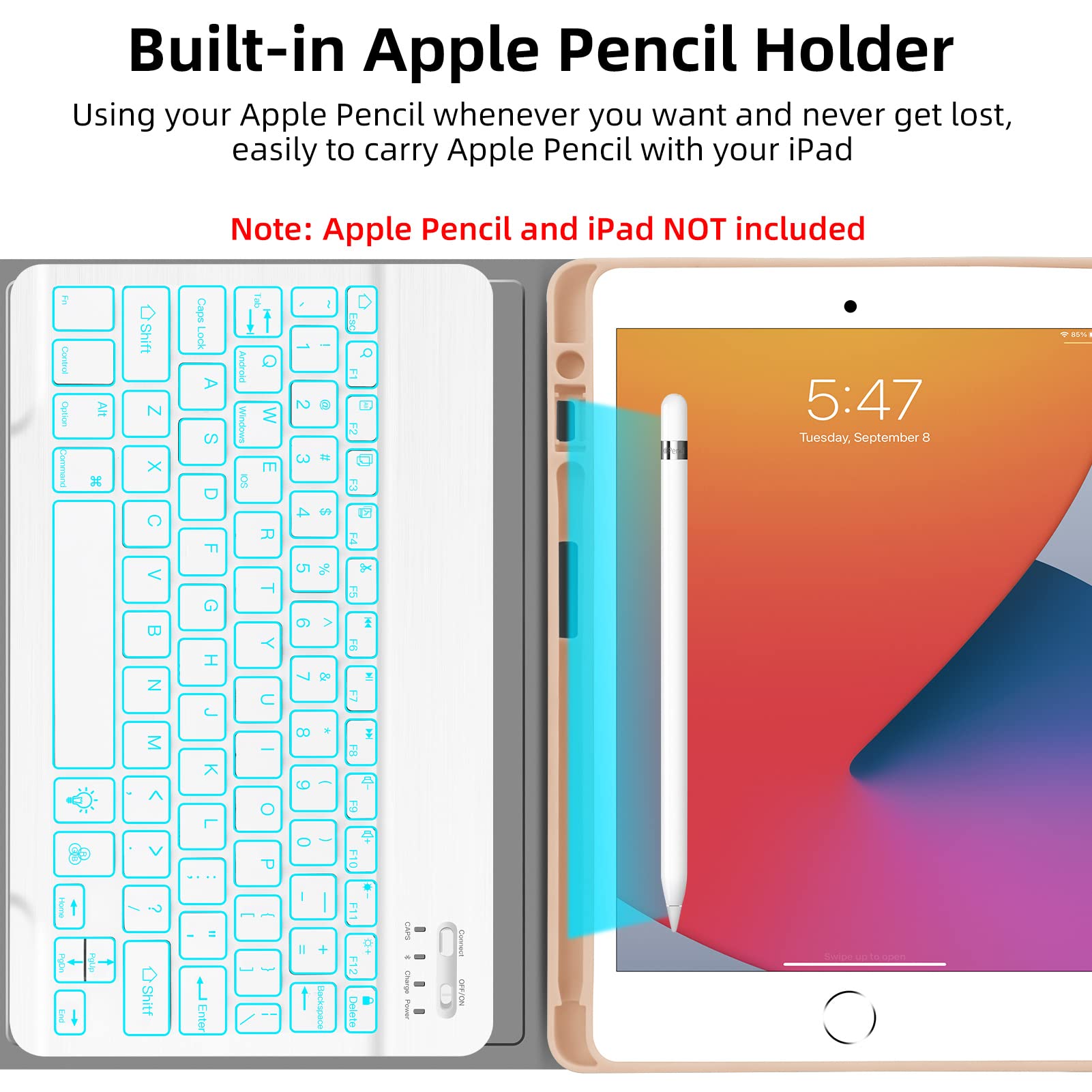- Original Keyboard Cases – Backlit Keyboard Case for iPad 10.2 9th 8th 7th Generation - Wireless Detachable Keyboard Thin Slim Smart Folio Stand Tablet Cover Case for iPad 10.2 Inch/iPad Air 10.5(3rd Gen)/iPad Pro 10.5, Pink by JUQITECH