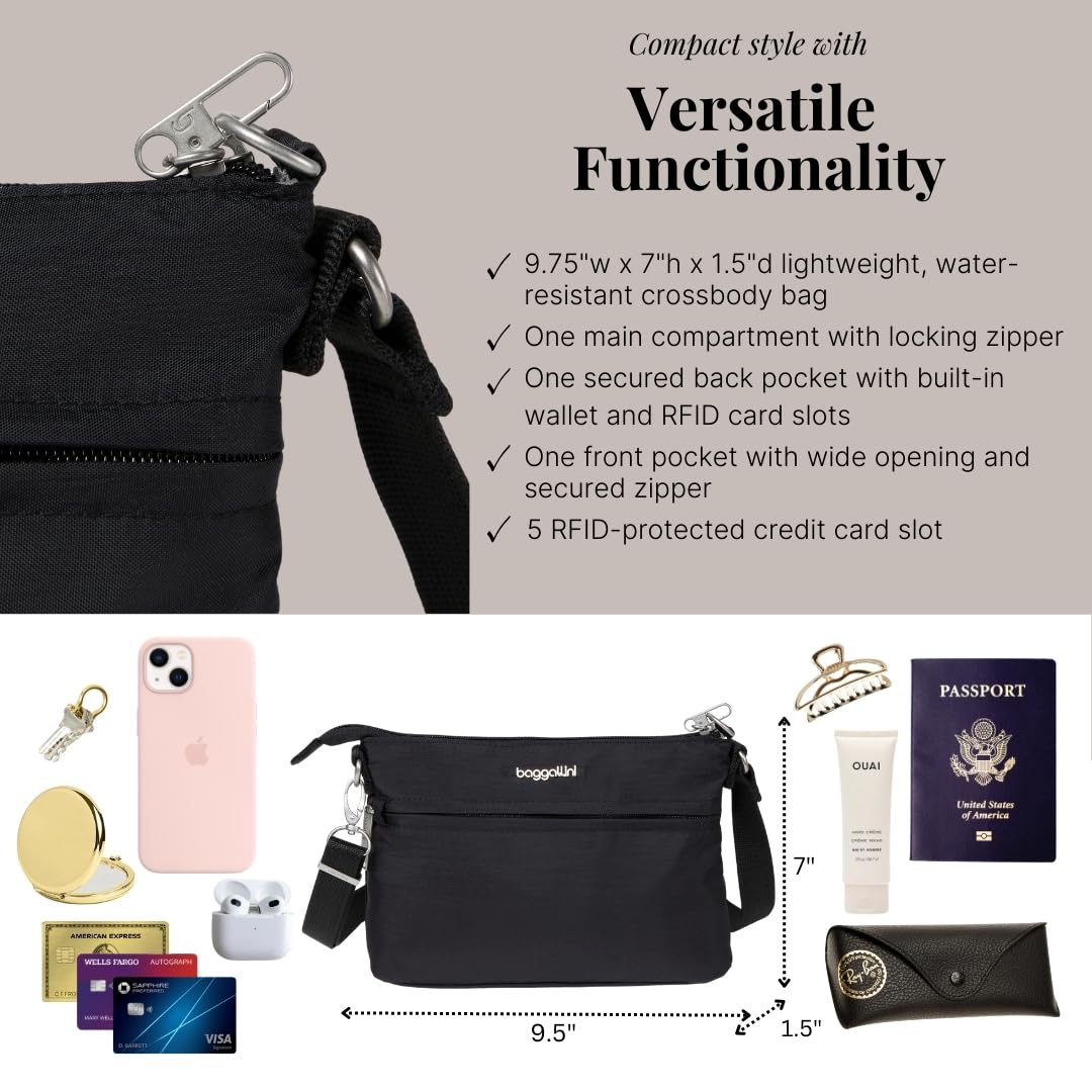 - Original Crossbody Bags – Securtex Anti-theft Memento Crossbody Bag, 9.7x7 Travel Purse with Locking Zipper, Lightweight Water-Resistant by Baggallini