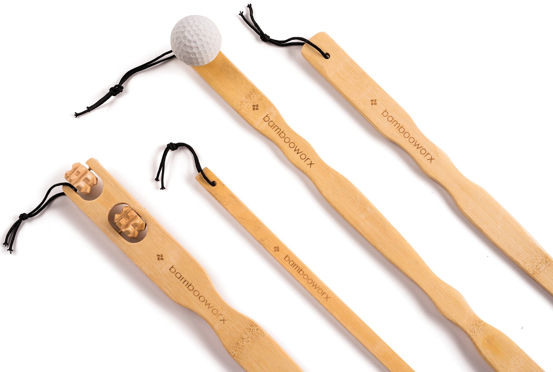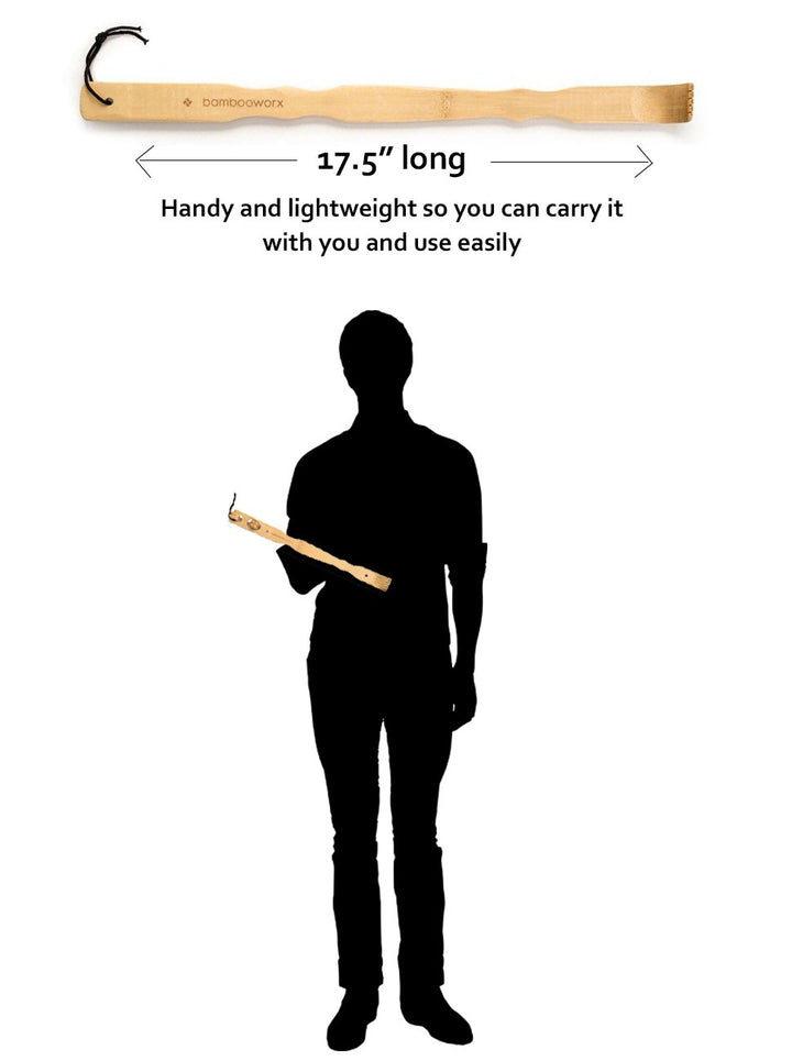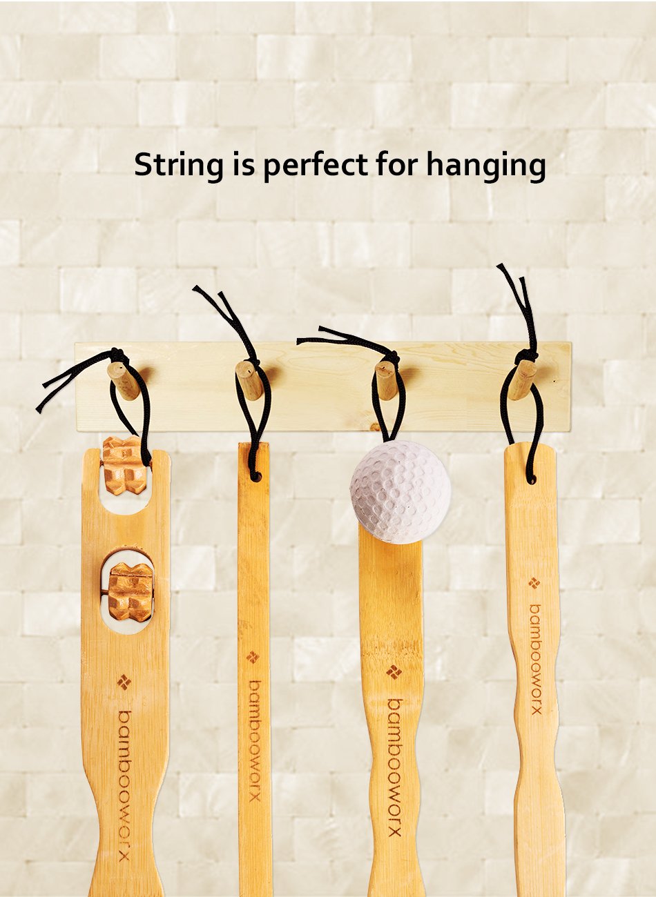 - Original Back Massagers – BambooWorx 4 Piece Traditional Back Scratcher and Body Relaxation Massager Set for Itching Relief, 17.5, Strong and Sturdy, 100% Natural Bamboo by BAMBOOWORX