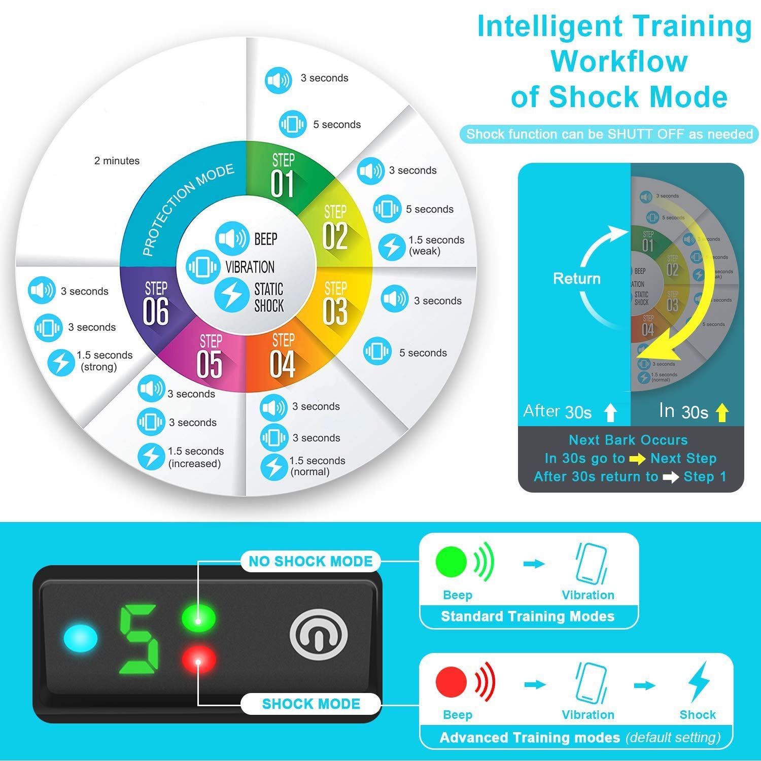- Smart dog bark collar with protection mode,training dogs should be step by step,this bark collar will temporarily stop working for 30 seconds if it trigger 7 times in 1 minute,to prevent from your dogs get too much punishment