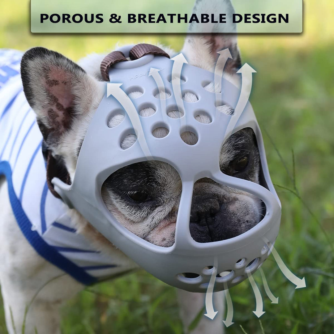 - Breathable & Comfortable: Your dog can drink, pant, and accept treats with large openings that provide maximum airflow and ventilation. With wide eye holes, this dog muzzle maintains your bulldog's full field of vision, helping your pet feel secure and aware of their surroundings. Multiple air holes around the basket muzzle's head and chin parts prevent your dog from overheating and keep them cool